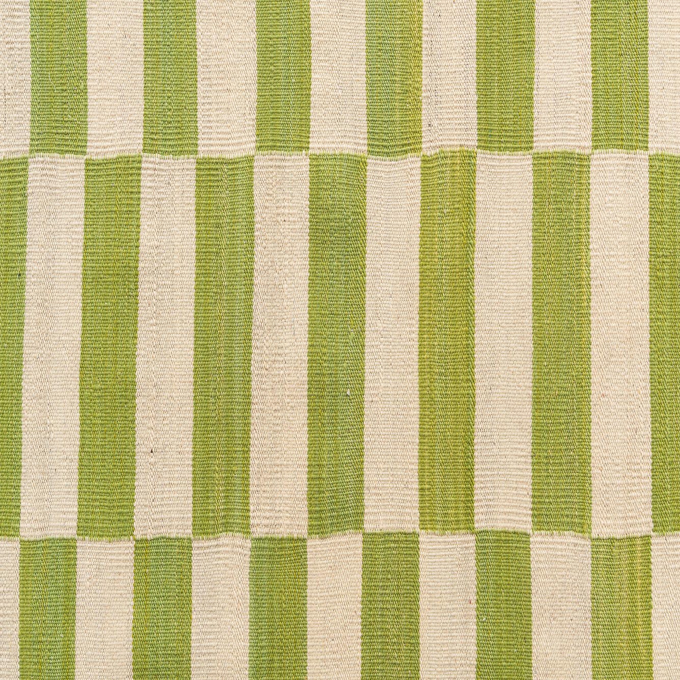 The Kilim Modern 10 Ft Runner adds a refreshing touch to any space with its hand-woven construction of 100% wool. This durable runner features a series of cream and light green horizontal stripes creating a clean and contemporary look. The cream background ensures the light green stripes stand out, offering a visual anchor for hallways and elongated spaces.