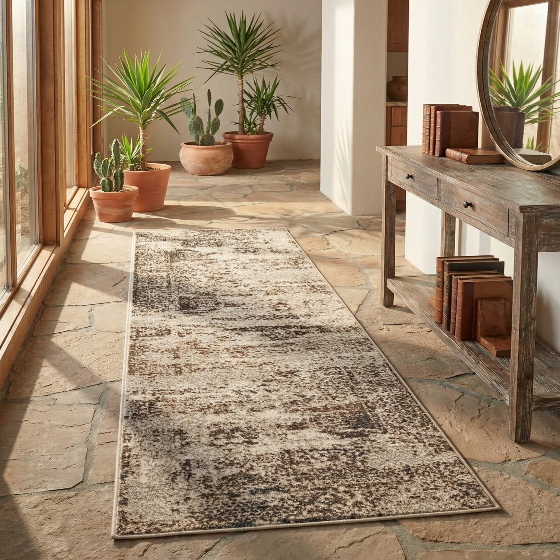 This runner works well in entryways and hallways, grounding narrow spaces without overpowering surrounding finishes. It pairs naturally with warm wood floors, linen or leather seating, and matte metal accents, fitting transitional, modern farmhouse, or relaxed contemporary interiors. Use it to add subtle pattern to a kitchen corridor, alongside a layered rug arrangement in a bedroom, or as a neutral anchor in high-traffic zones.