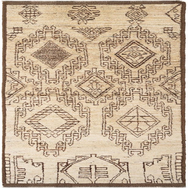 Primary color is Cream. Colors in this rug include: Cream, Brown.