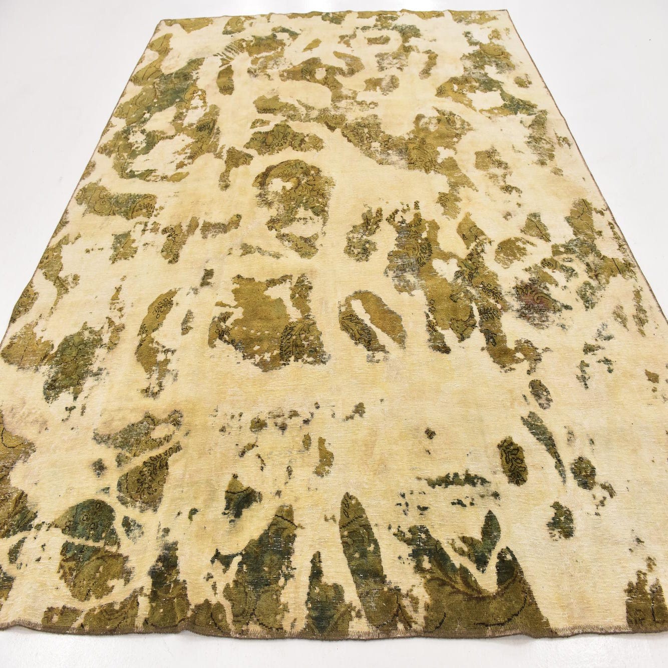 This Persian Ultra Vintage rug is an antique Persian Rug that has been washed, over-dyed, and then shaved down to a low pile. Look at the detail pictures to fully appreciate the uniqueness of this piece.