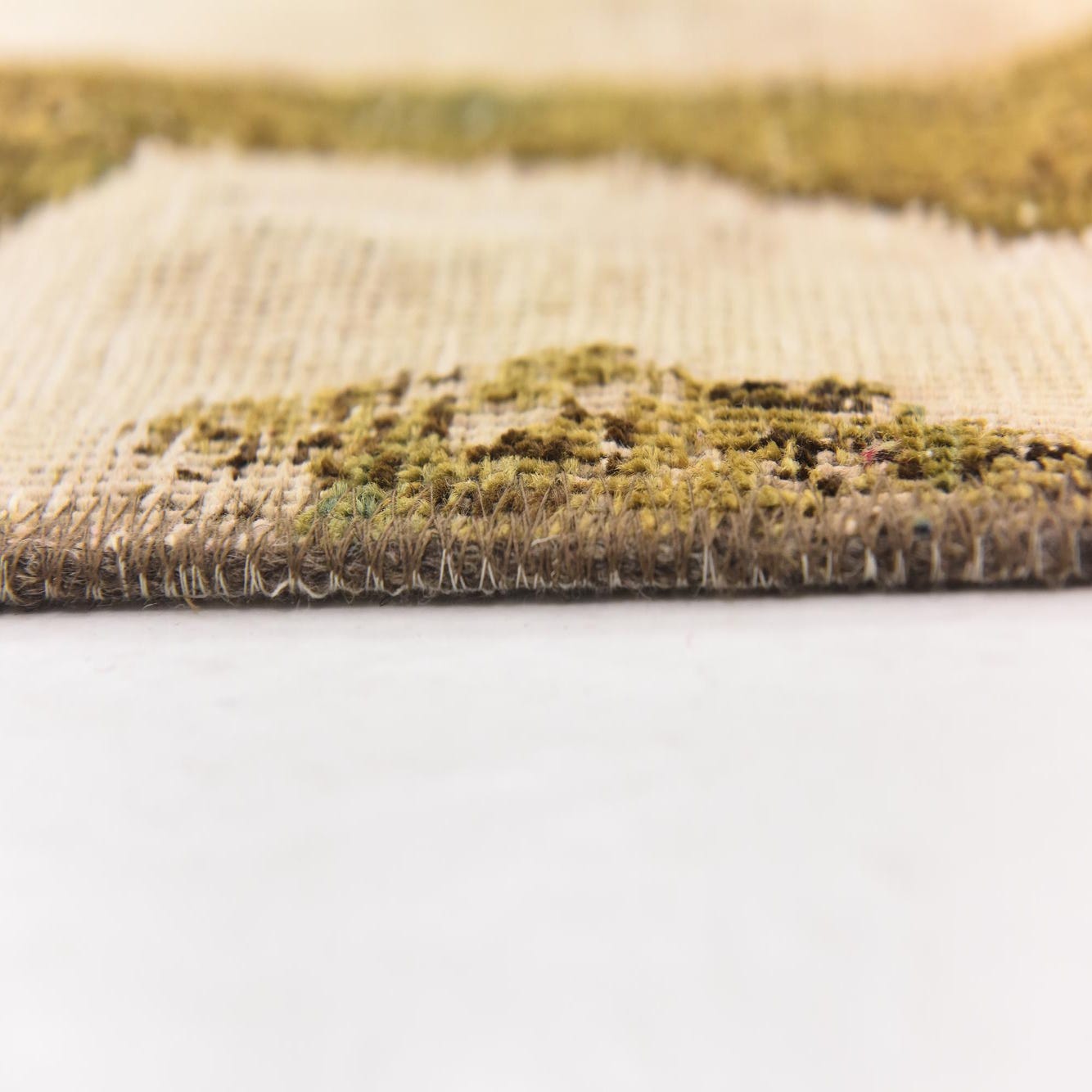 Primary color is Cream. Colors in this rug include: Cream, Black, Brown, Green, Olive, Beige.