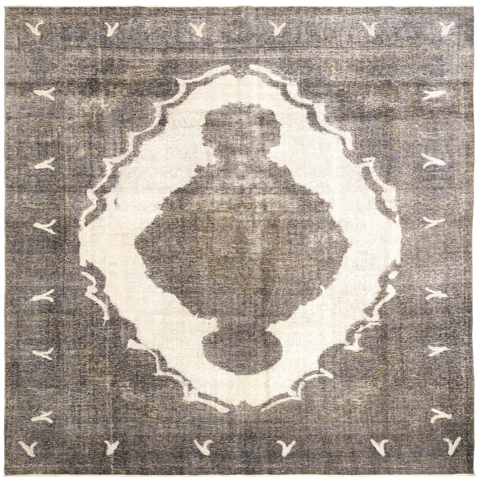 A 10x12 rectangular ivory and cream Persian rug with a distressed look and a large central medallion.
