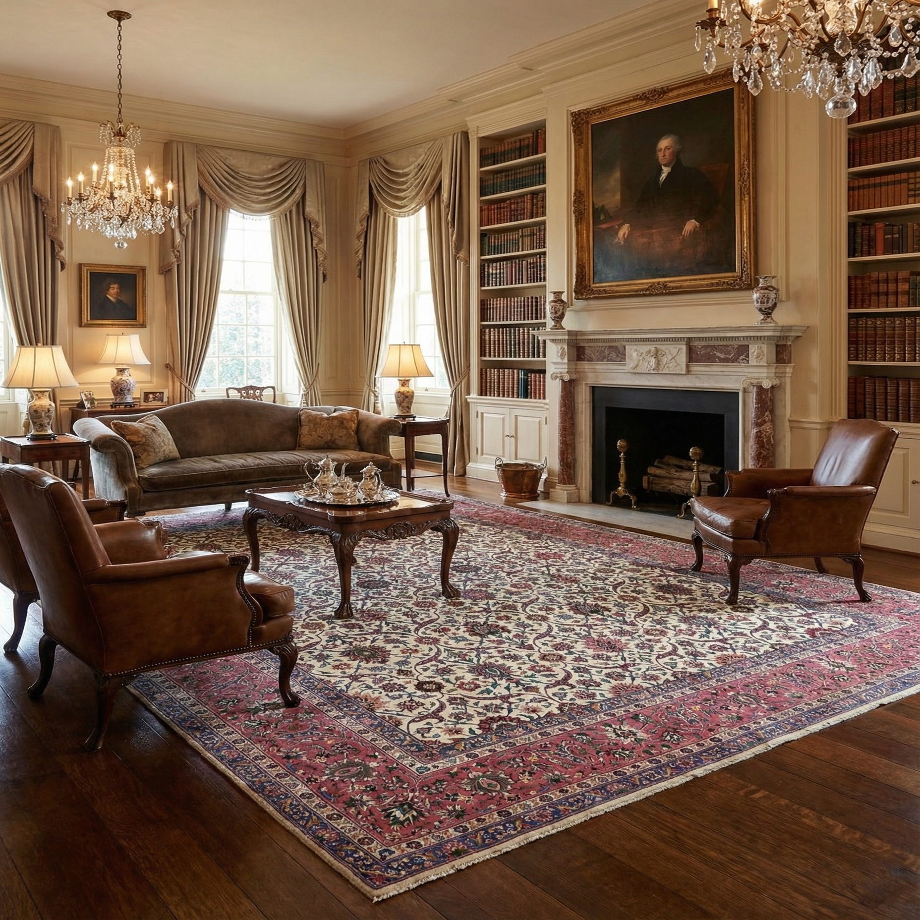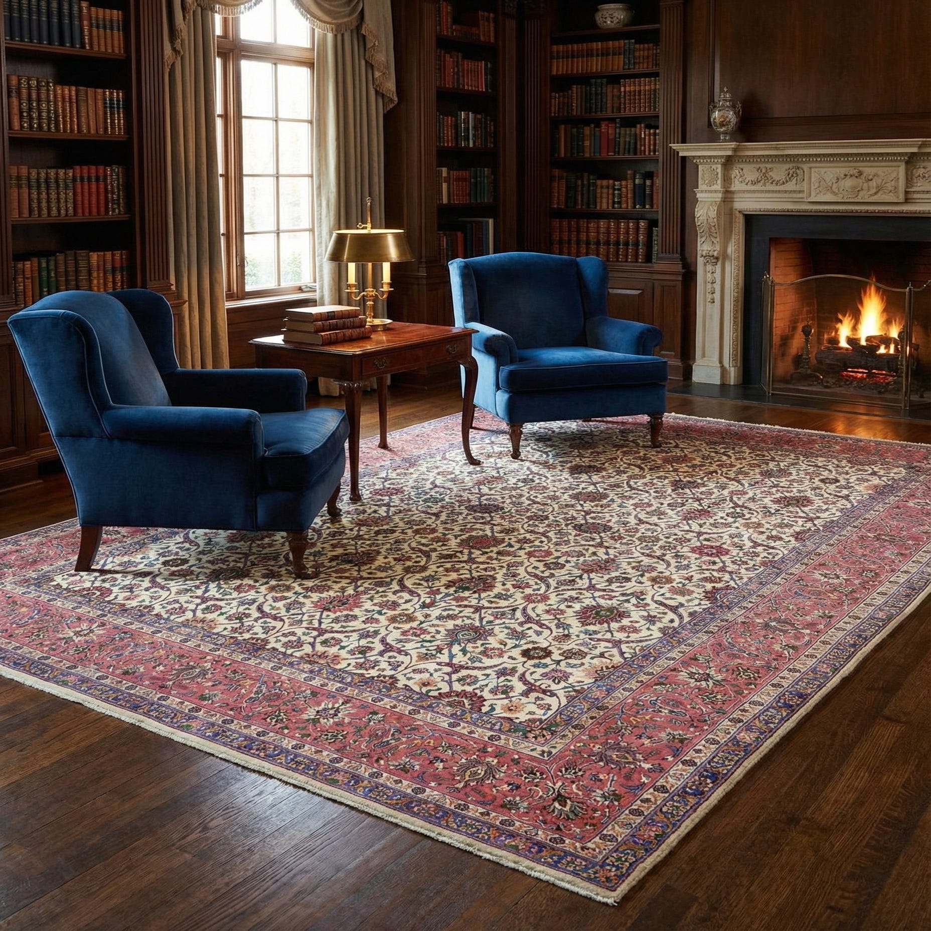 With its classic pattern and warm color spectrum, this rug integrates seamlessly into a variety of interior design scenarios. It is well suited for formal living rooms where it can serve as a statement centerpiece or dining areas where it can add a sense of elegance and warmth. The rug's size and visual complexity also make it an ideal choice for open-concept spaces, providing definition and anchoring furniture groupings without overwhelming the decor. In more private quarters such as a study or bedroom, it can create a sense of serenity and tradition.