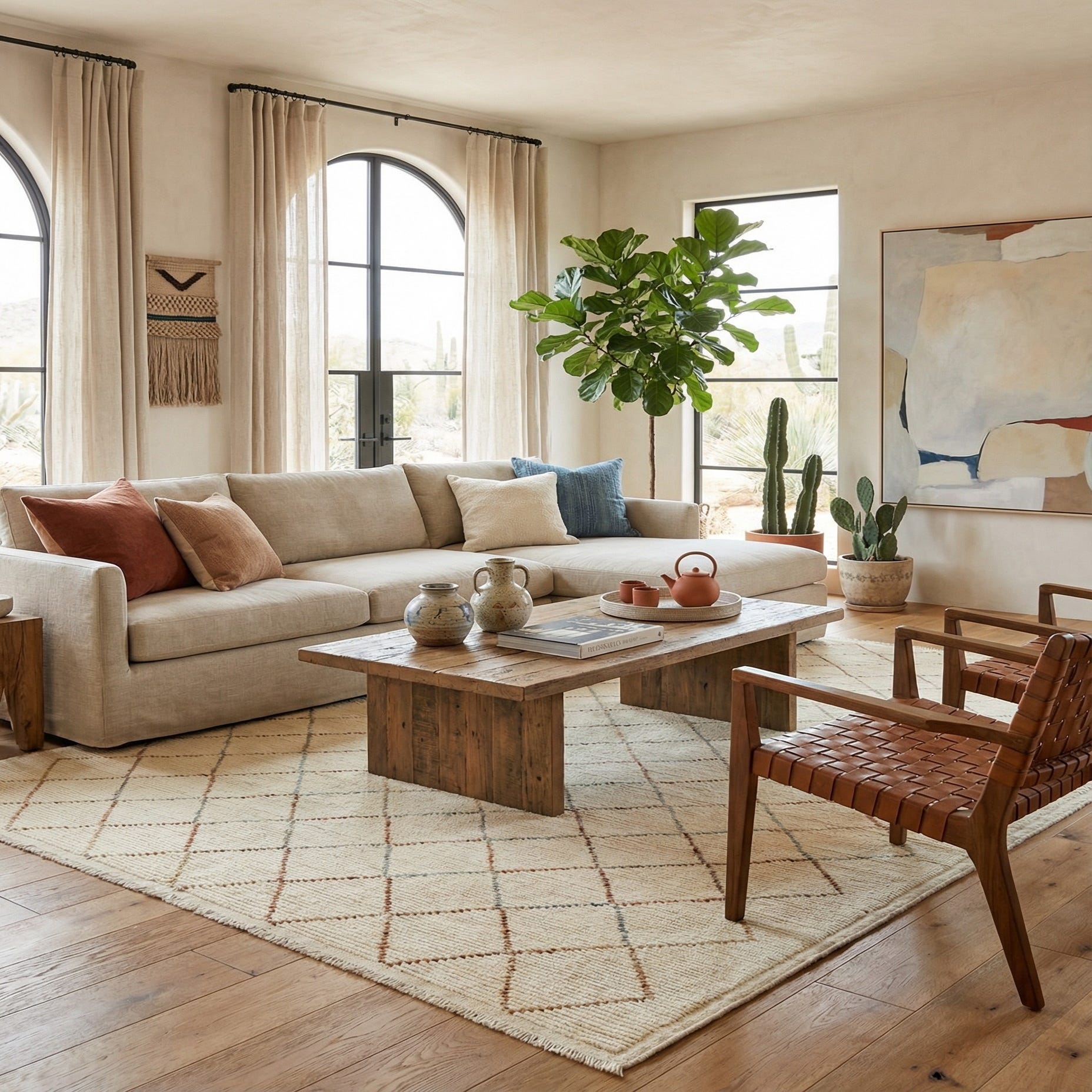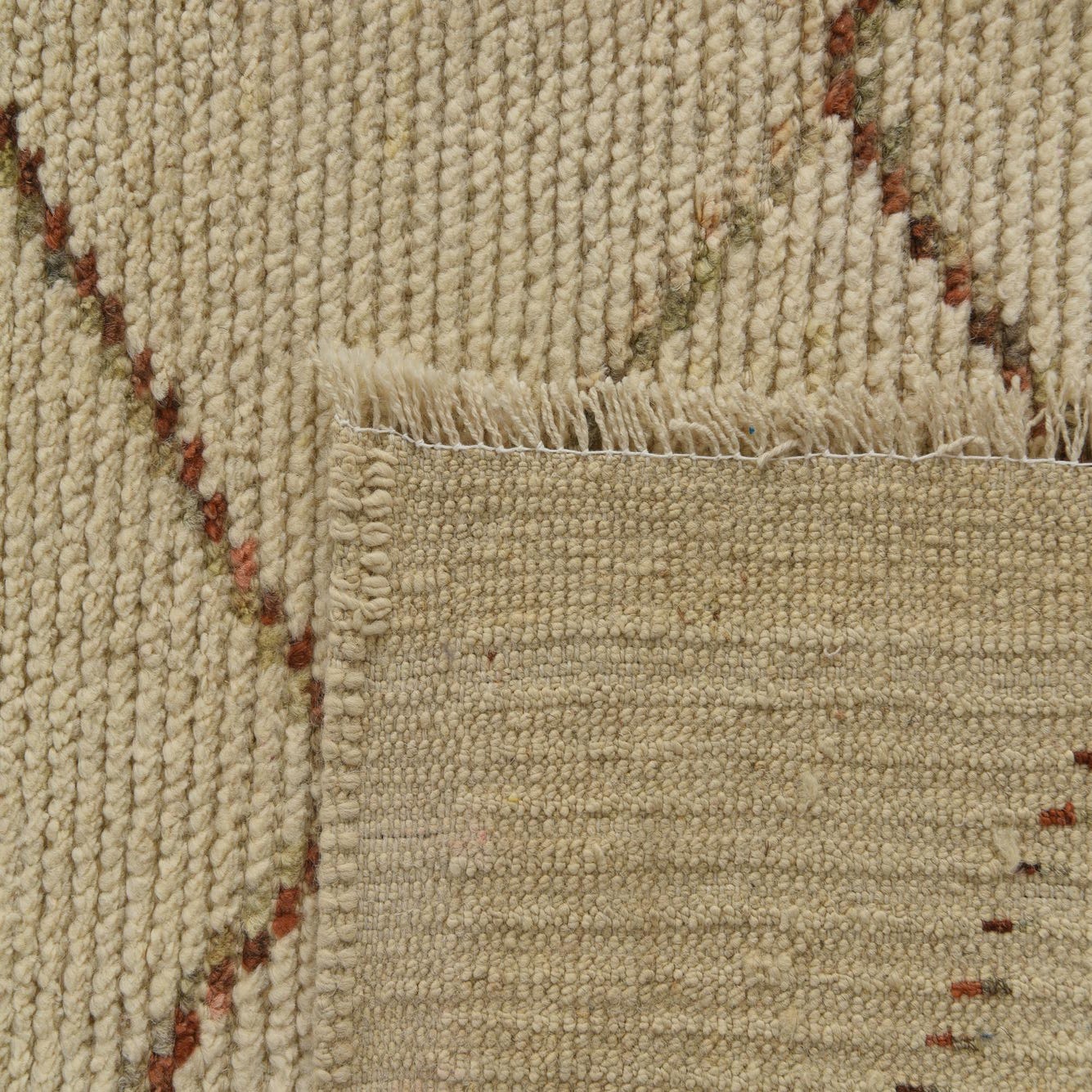 This Moroccan 10x13 rug is well-suited for spacious living rooms, dining areas, or large bedrooms, where it can serve as an anchoring statement piece. Its understated elegance makes it compatible with minimalist decors seeking a touch of warmth, while its pattern and color scheme can easily complement more eclectic or bohemian styles. Additionally, the wool construction offers natural resilience, making this rug a suitable choice for high-traffic areas where longevity is a priority.