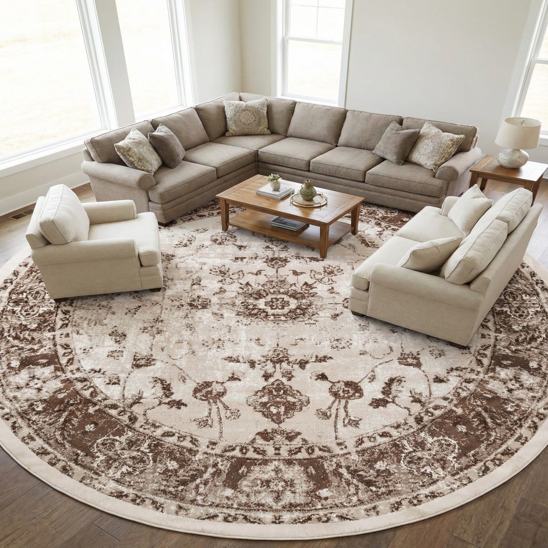 Primary color is Cream. Colors in this rug include: Cream, Beige, Brown, Light Brown.