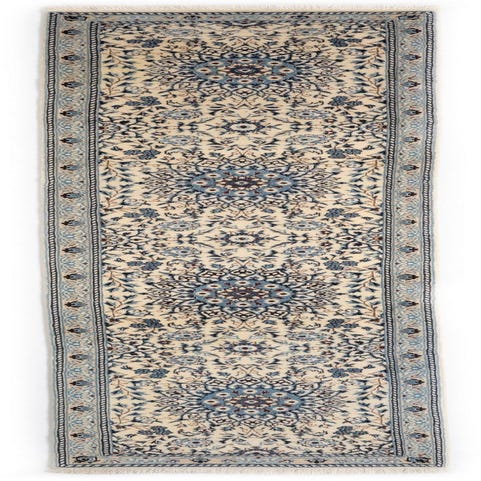 Primary color is Cream. Colors in this rug include: Cream, Cream, Dark Blue, Blue, Beige, Black.