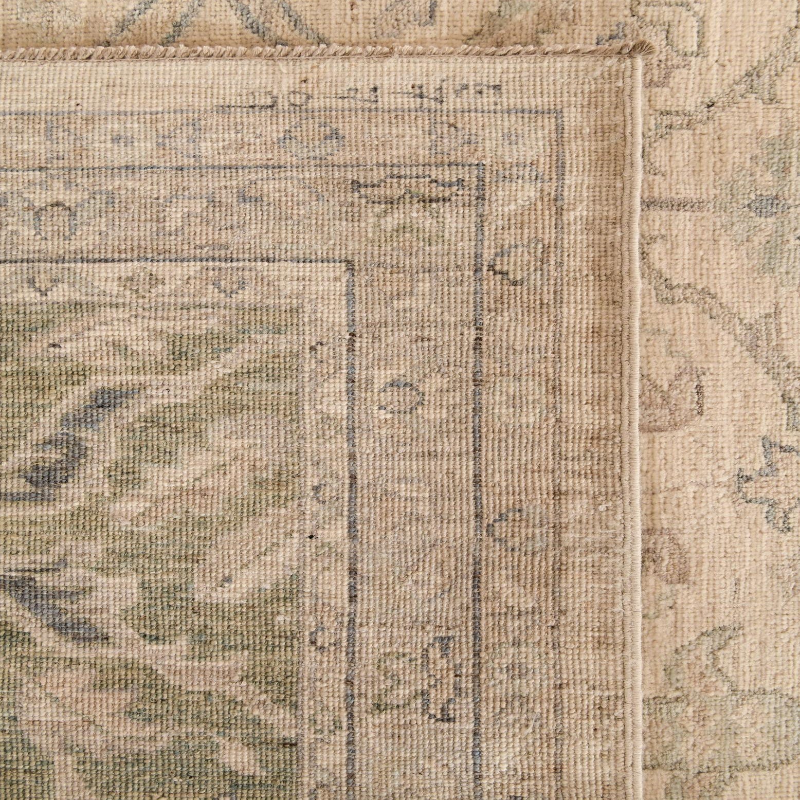 Primary color is Cream. Colors in this rug include: Cream, Beige, Blue, Olive.