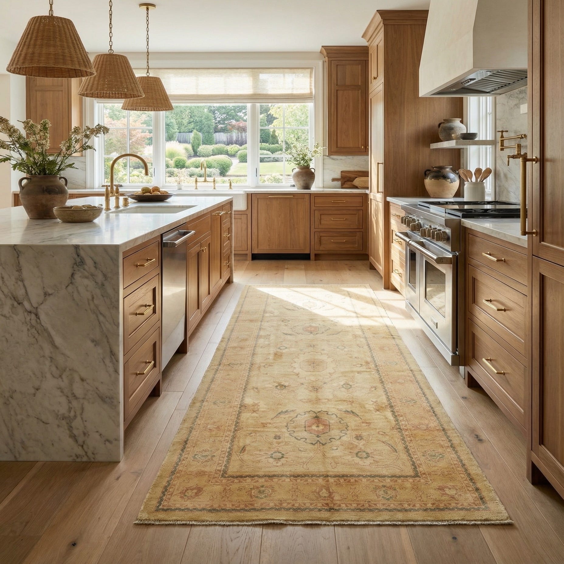 This runner would be a distinguished addition to a variety of decor settings. It can serve as a refined touch in a classic, traditional hallway, or add warmth to a contemporary space that favors muted tones and time-honored design elements. In a transitional interior, the Meshkabad runner can act as a bridge between modern and vintage aesthetic elements. Additionally, its narrow format and extended length make it particularly well-suited for long corridors or alongside a kitchen island, guiding movement and adding a layer of texture and color.