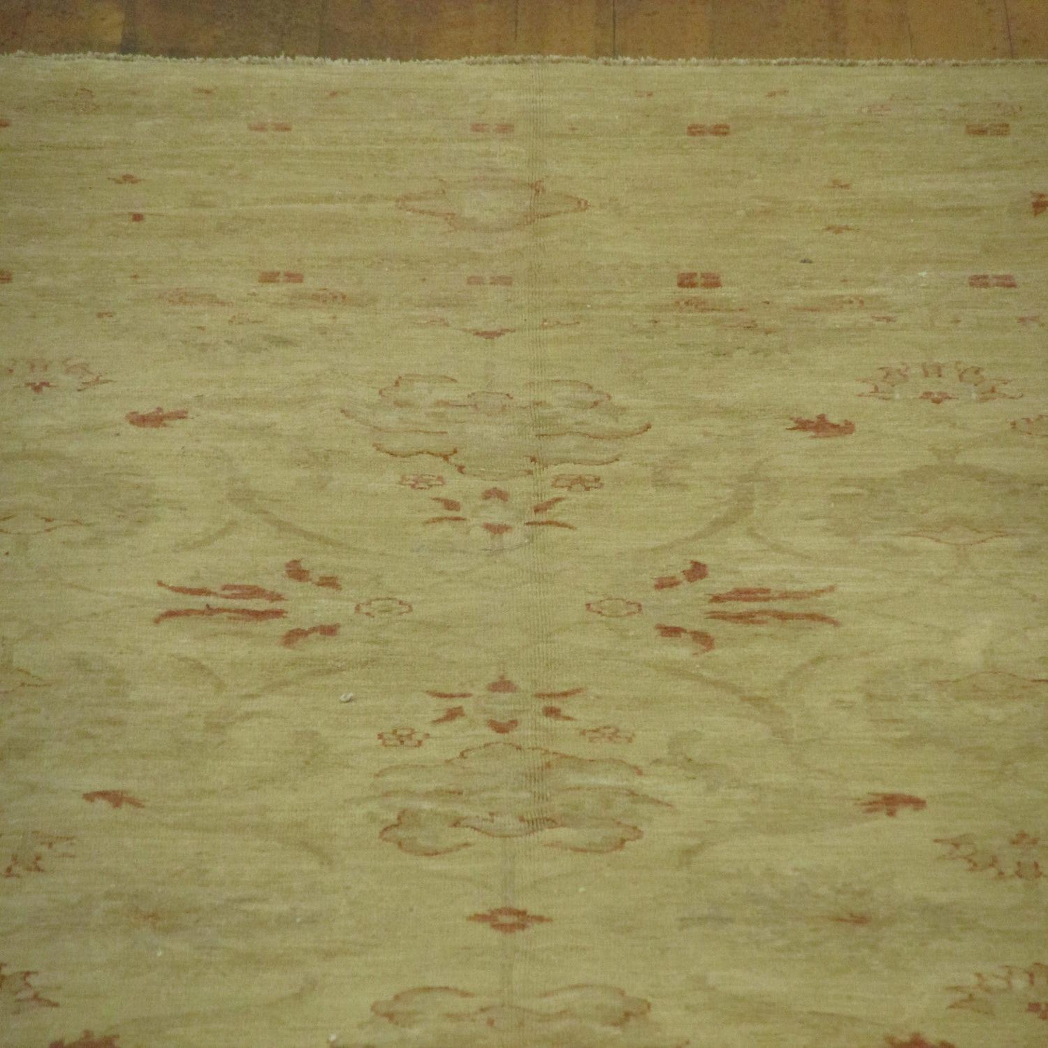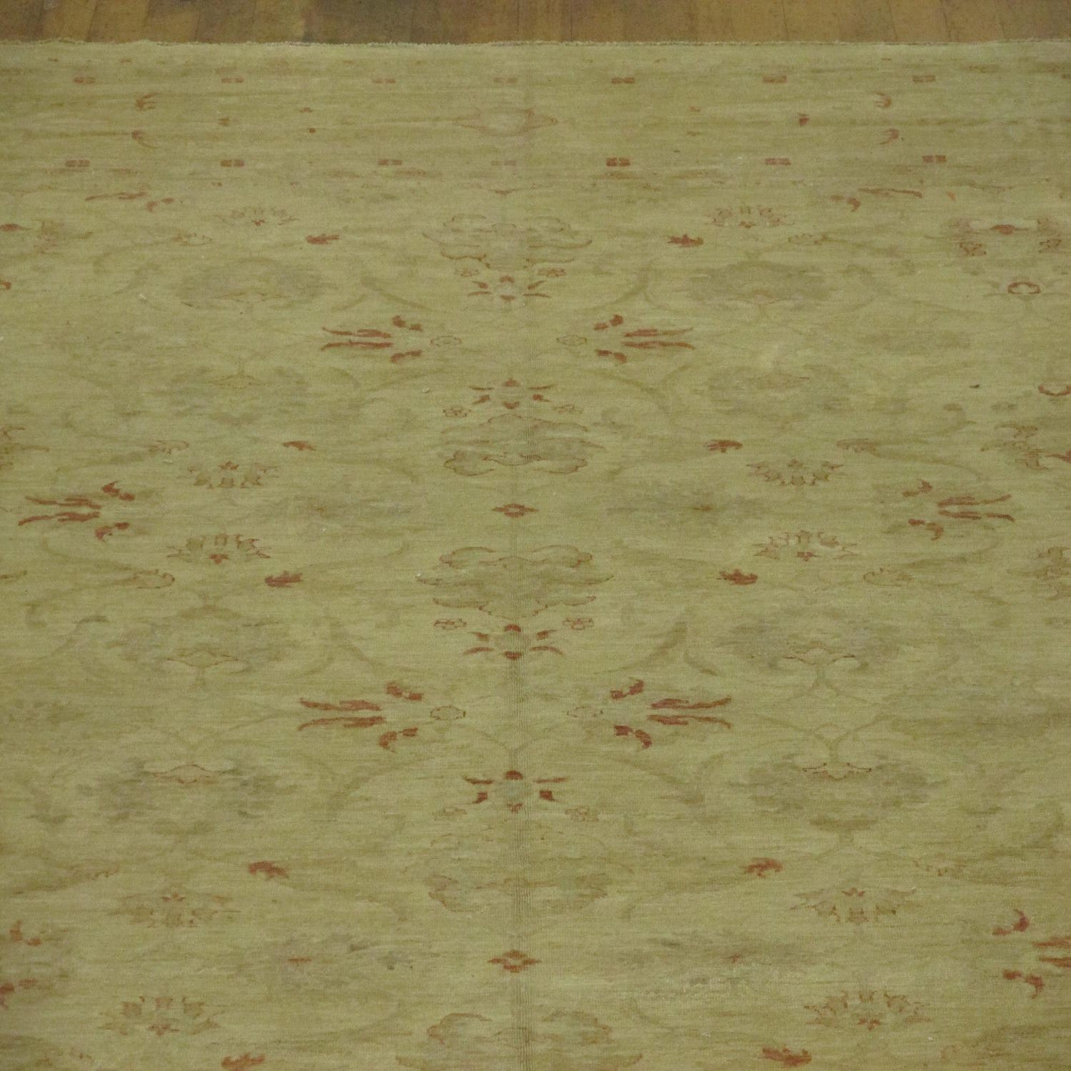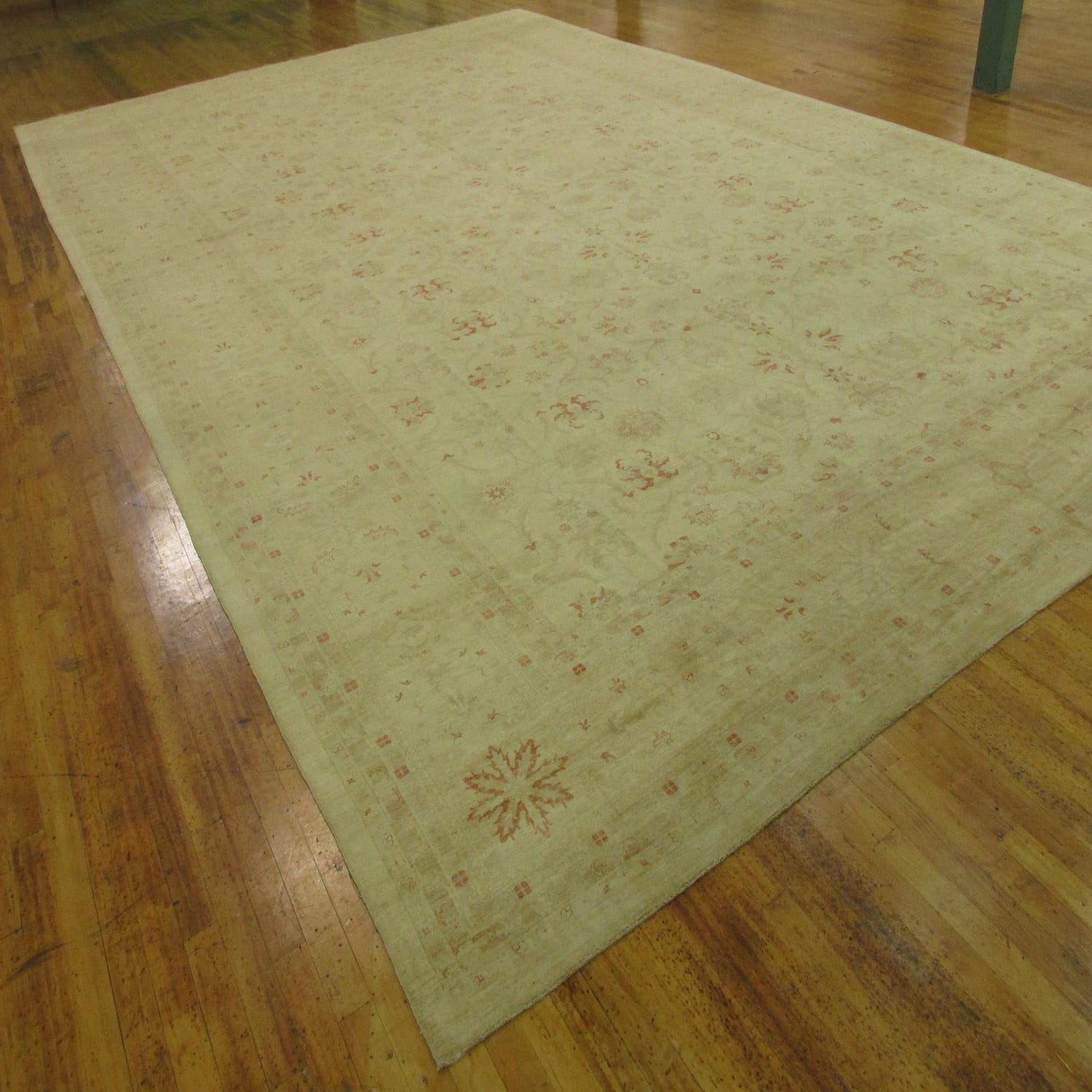 Large 13x18 rectangular ivory Peshawar Ziegler rug with a subtle red botanical and floral pattern, ideal for a living room.