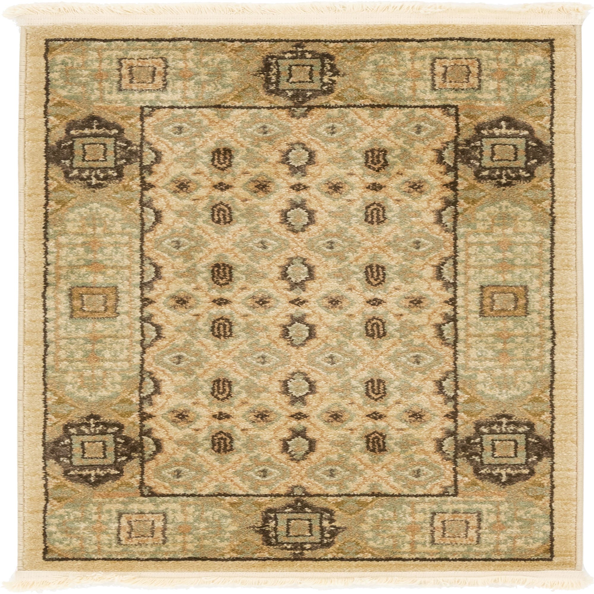 Primary color is Cream. Colors in this rug include: Cream, Candy, Light Green, Tan, Brown.