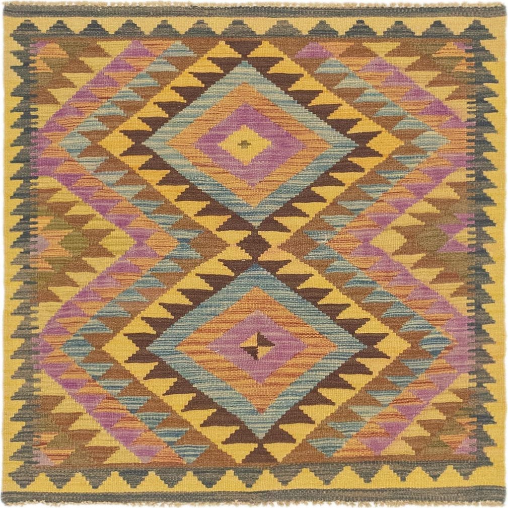 3' x 3' 6 Hand Woven Kilim Maymana Wool Square Rug