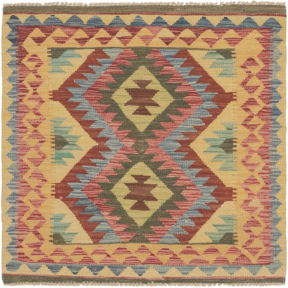 3' 2 x 3' 5 Hand Woven Kilim Maymana Wool Square Rug
