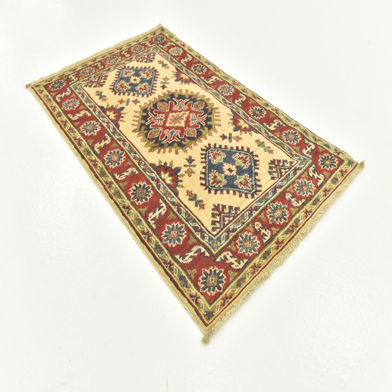 A 3x4 rectangular Rugs.com Kazak rug with an ivory field, tribal oriental pattern, and a deep red border.