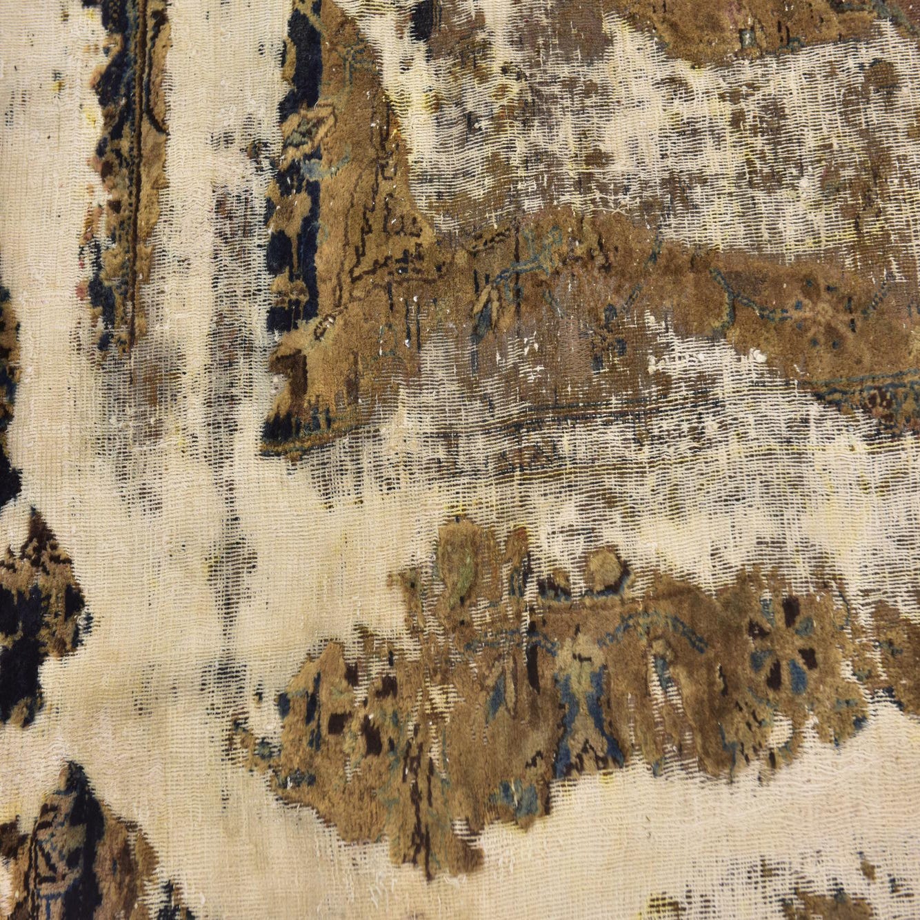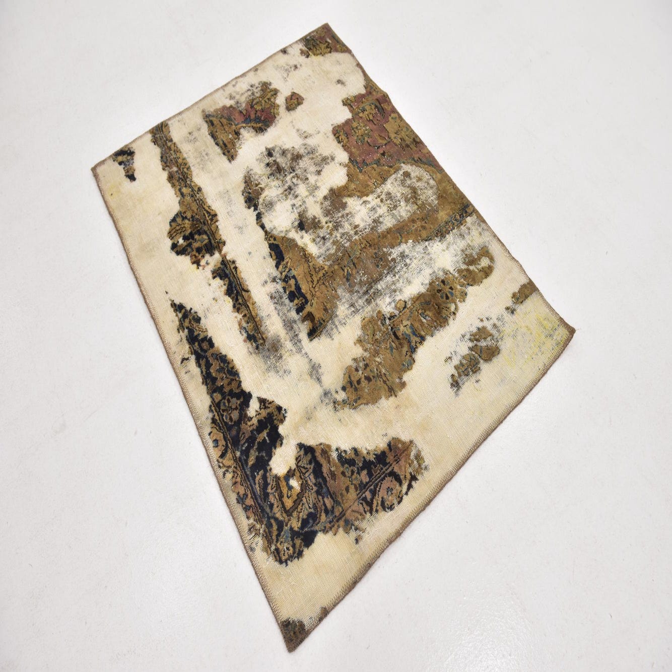 This Persian Ultra Vintage rug is an antique Persian Rug that has been washed, over-dyed, and then shaved down to a low pile. Look at the detail pictures to fully appreciate the uniqueness of this piece.