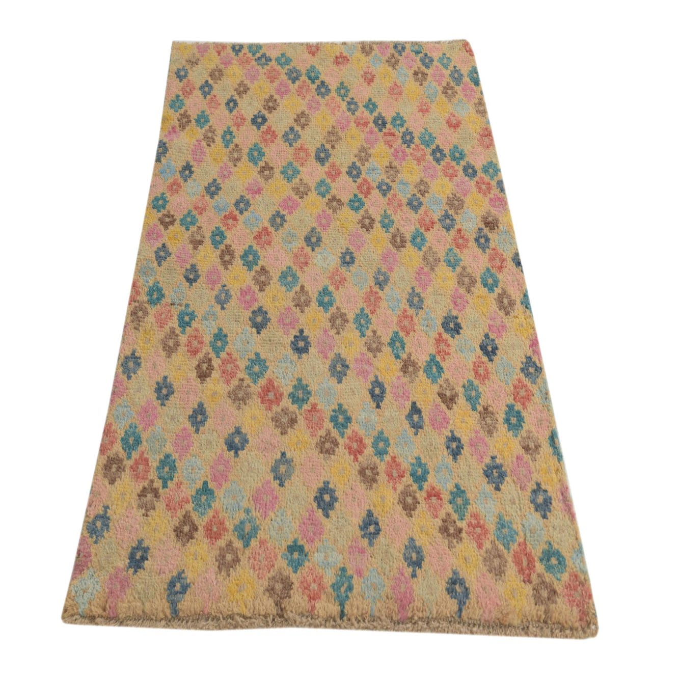A 3x5 rectangular Balouch rug from Rugs.com, featuring a tribal pattern of colorful diamonds in pink, blue, yellow, and brown on an ivory wool background.