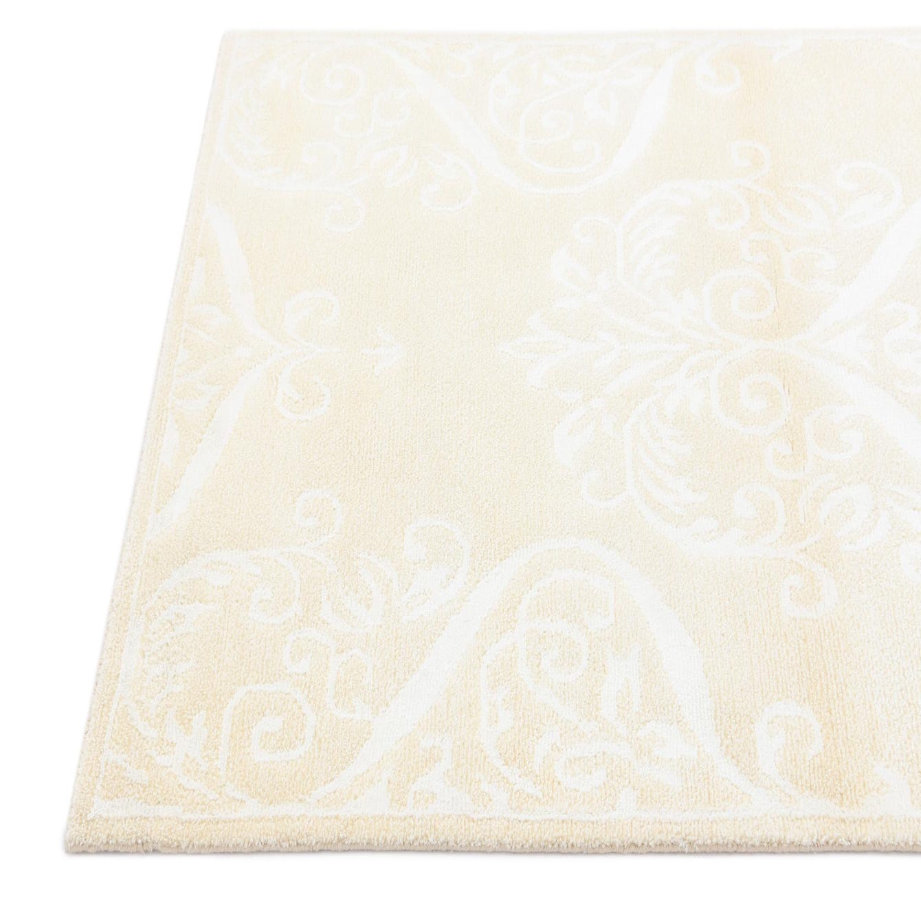 The Darya collection presents a hand-knotted rug crafted from 100% wool, offering a combination of durability and tactile pleasure. This 3x5 piece showcases a cream background, punctuated with gentle touches of beige and ivory that compose its elegant damask-inspired pattern. The interplay of these neutral hues results in a rug that exudes a serene, classic appeal.