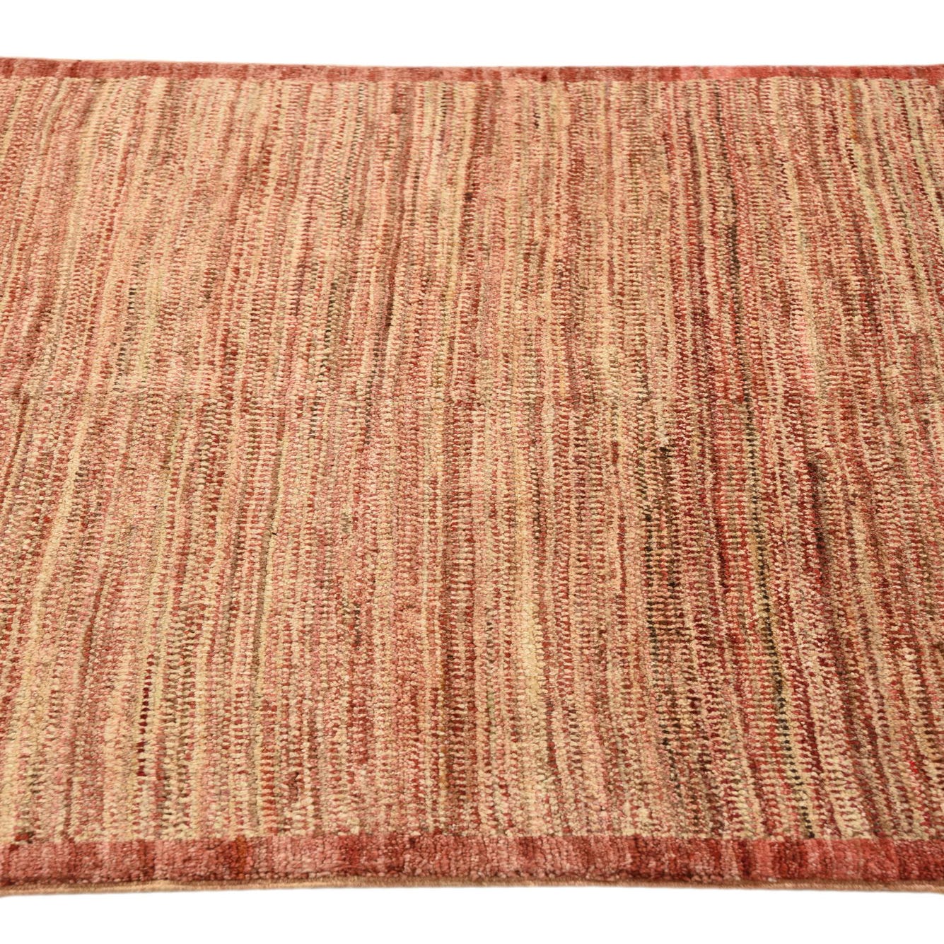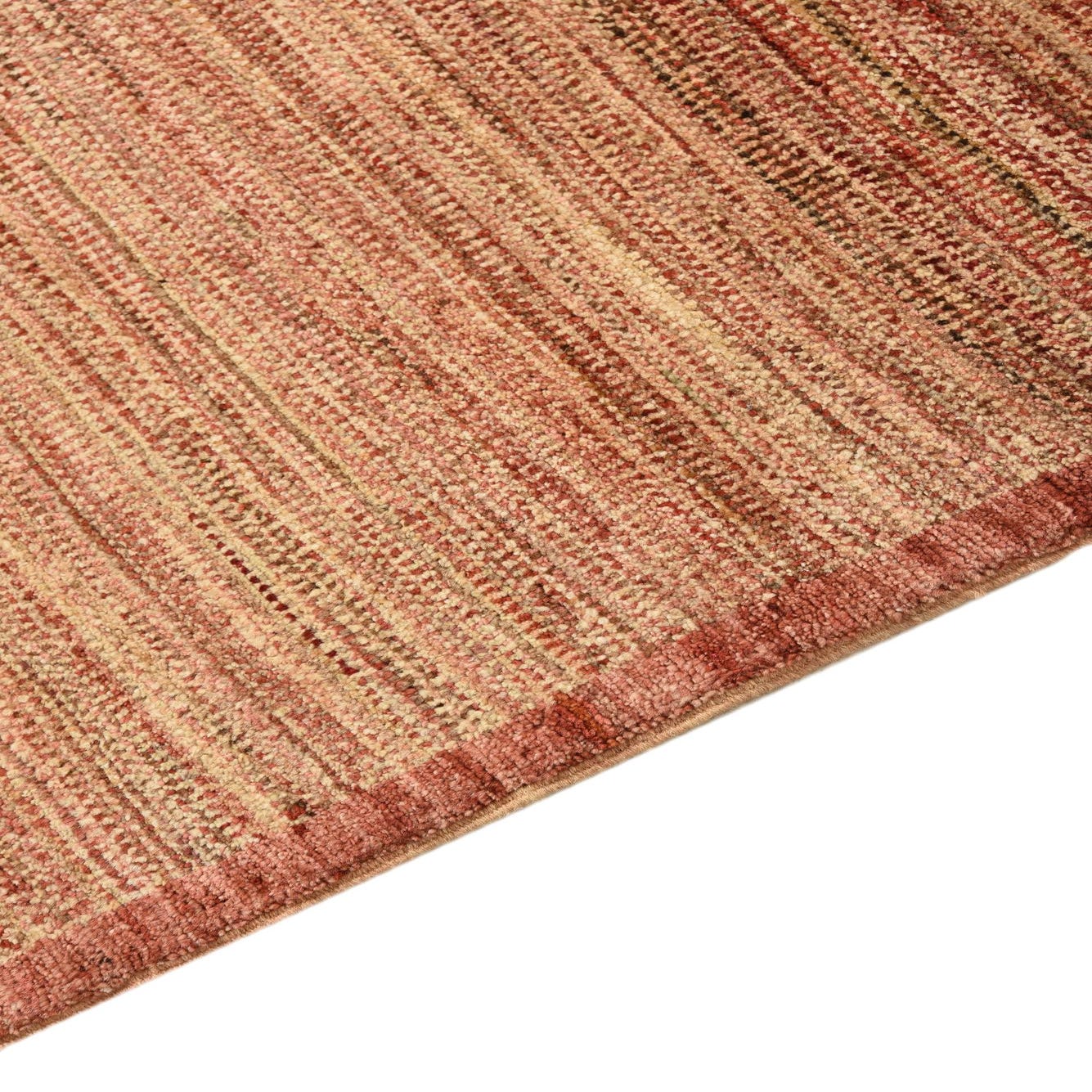 This 3x5 Modern Ziegler rug is a sophisticated blend of contemporary design and traditional craftsmanship. Hand-knotted from 100% hand-spun wool, the rug exhibits a textural richness that adds depth and dimension to any space. The piece features a cream background, beautifully complemented by stripes in black, brown, and touches of burgundy, which bring warmth and a sense of organic symmetry. The subtle shift in tones creates a visual texture that is both engaging and soothing.