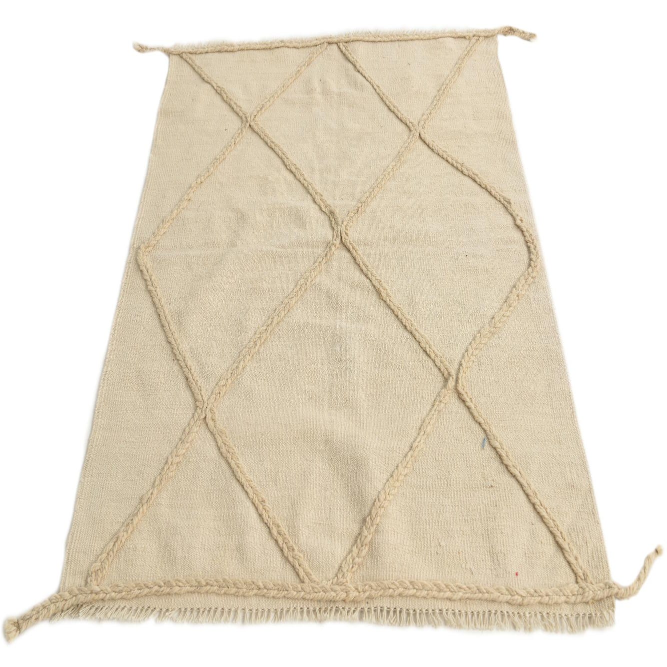 A 3x5 rectangular ivory wool shag rug featuring a raised braided diamond pattern, suitable for various indoor spaces.
