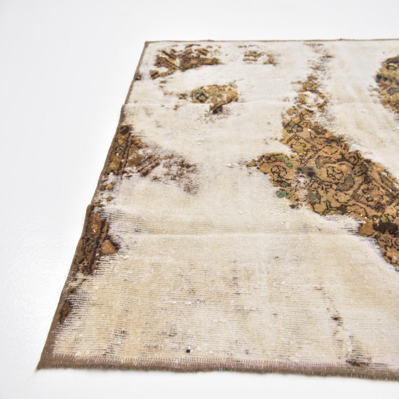 This Persian Ultra Vintage rug is an antique Persian Rug that has been washed, over-dyed, and then shaved down to a low pile. Look at the detail pictures to fully appreciate the uniqueness of this piece.