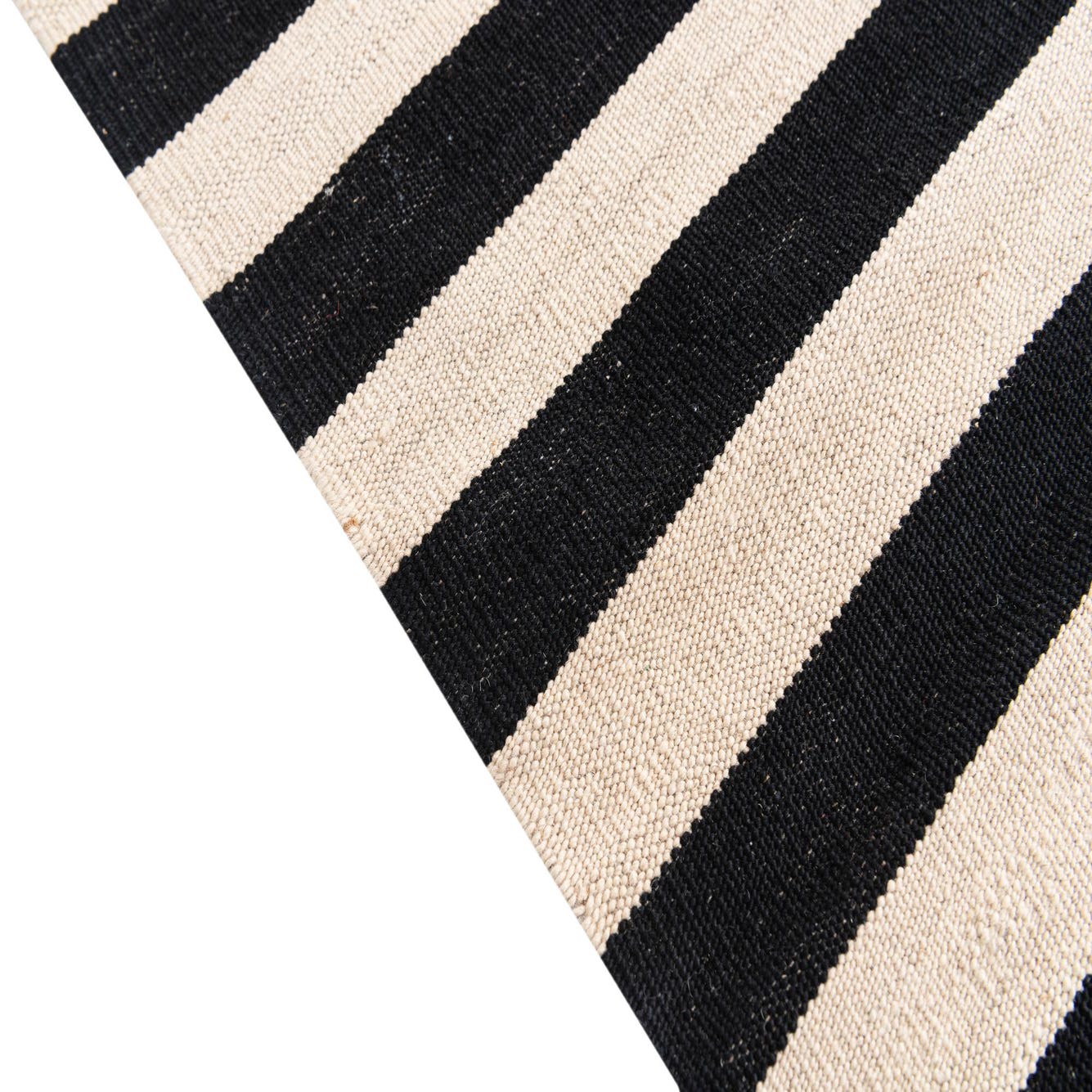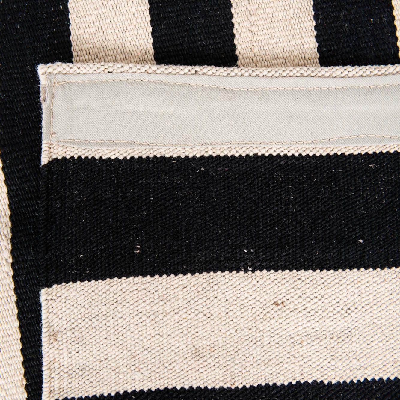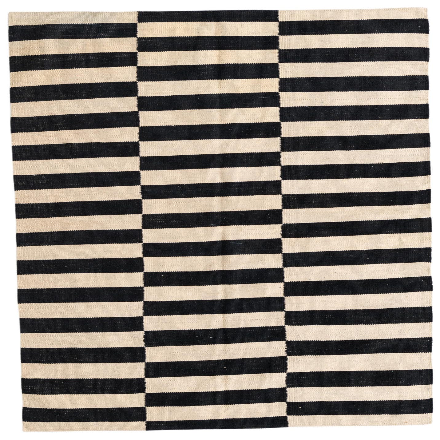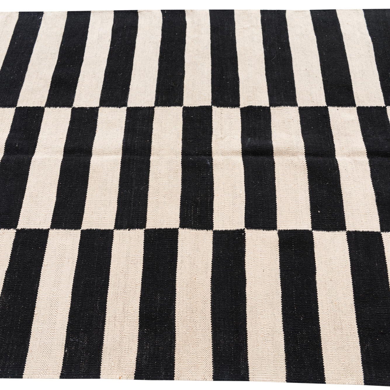 Part of our Kilim Modern collection, this hand-woven 4x6 rug showcases a timeless striped pattern that complements a diverse array of interior design styles. With its contrasting black and cream palette, the design brings a bold yet balanced visual appeal to any space. Crafted with 100% wool, the rug's texture contributes both durability and a naturally tactile surface.