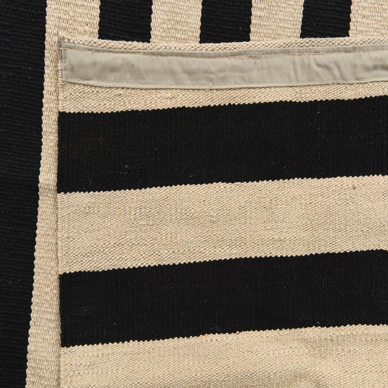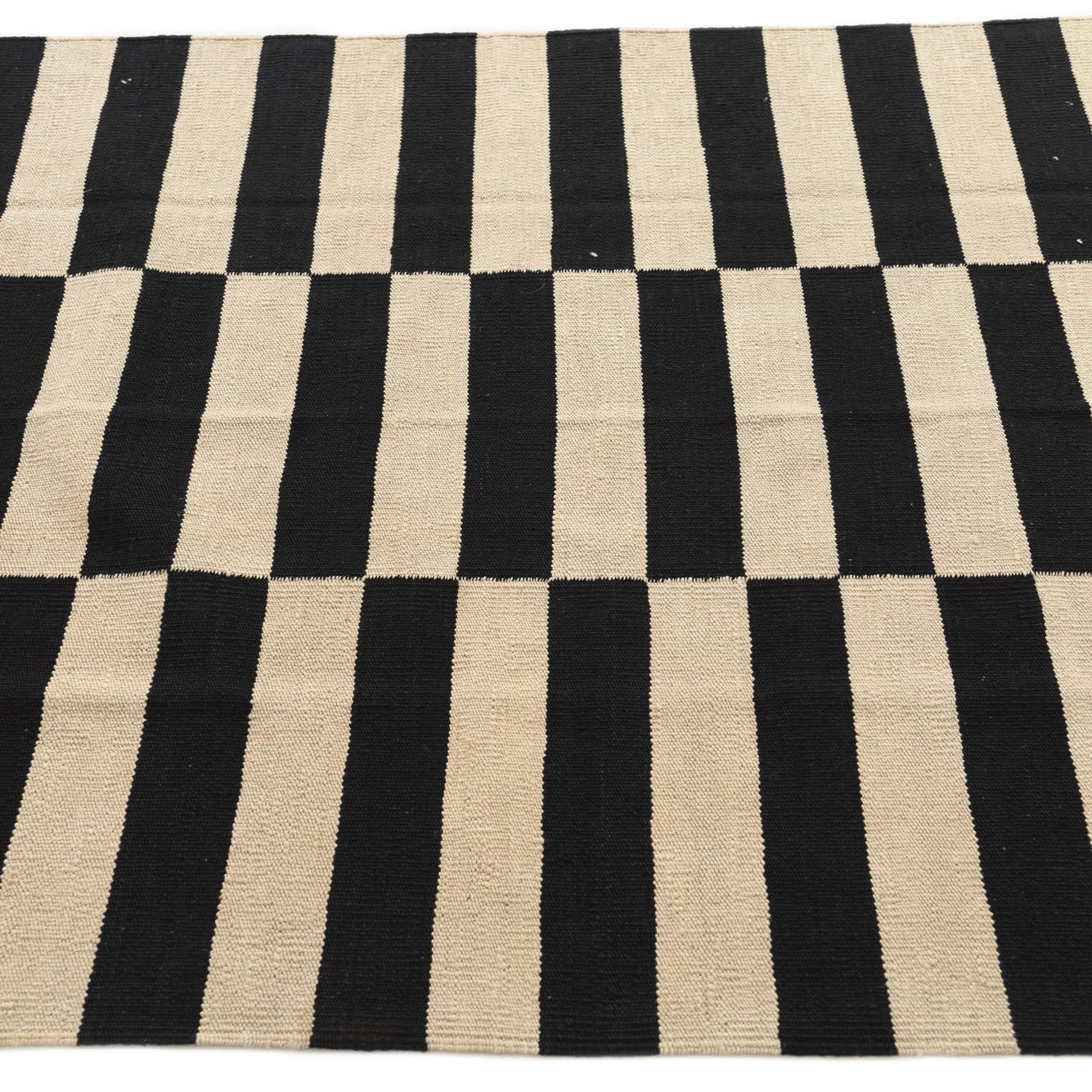 A 4x6 rectangular Kilim Modern rug with a bold black and ivory striped pattern, perfect for a living room.