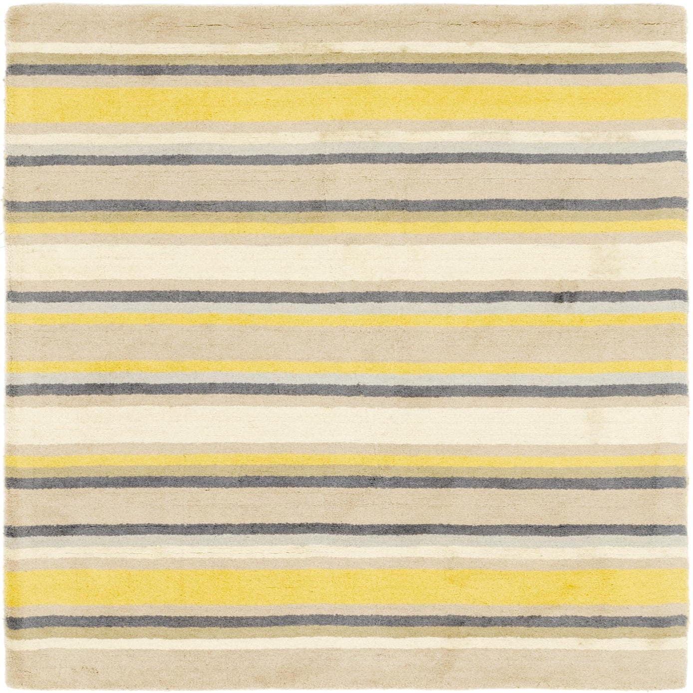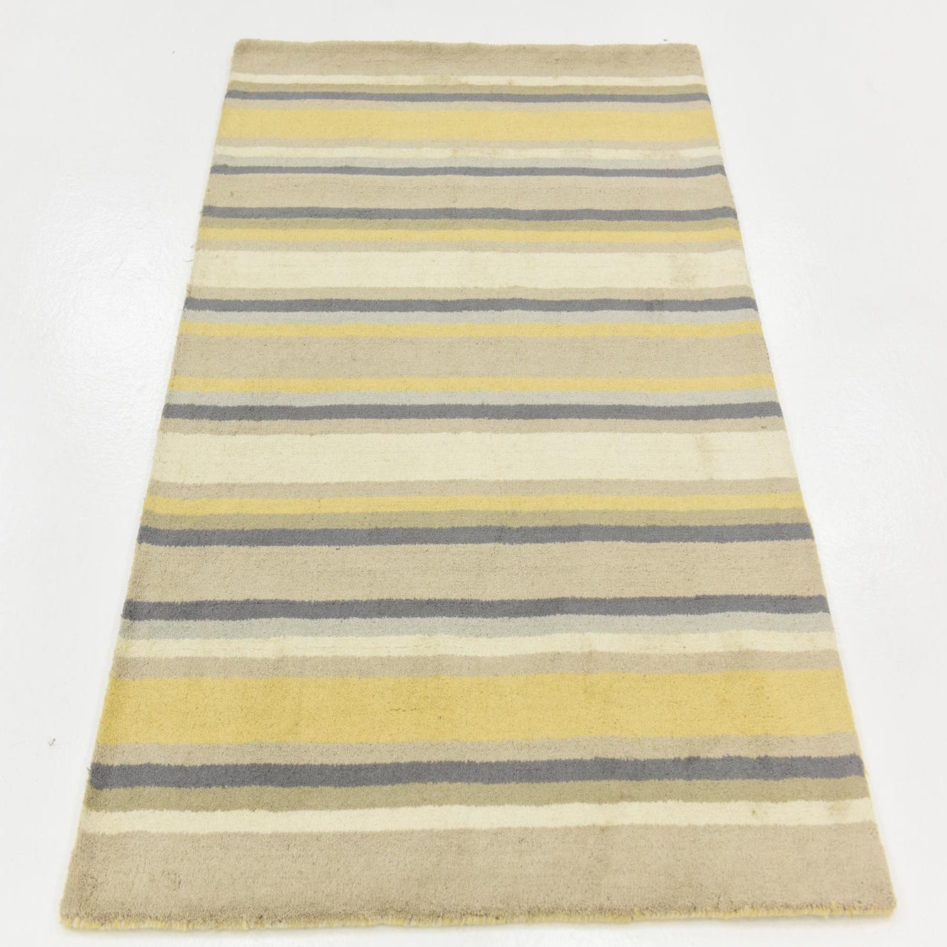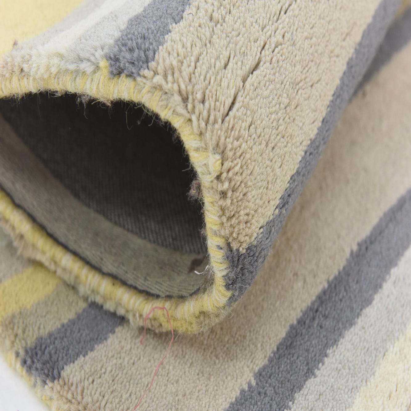 A 4x6 rectangular Luna Collection rug featuring horizontal stripes in varying shades of ivory, cream, yellow, and gray, perfect for a modern living room.
