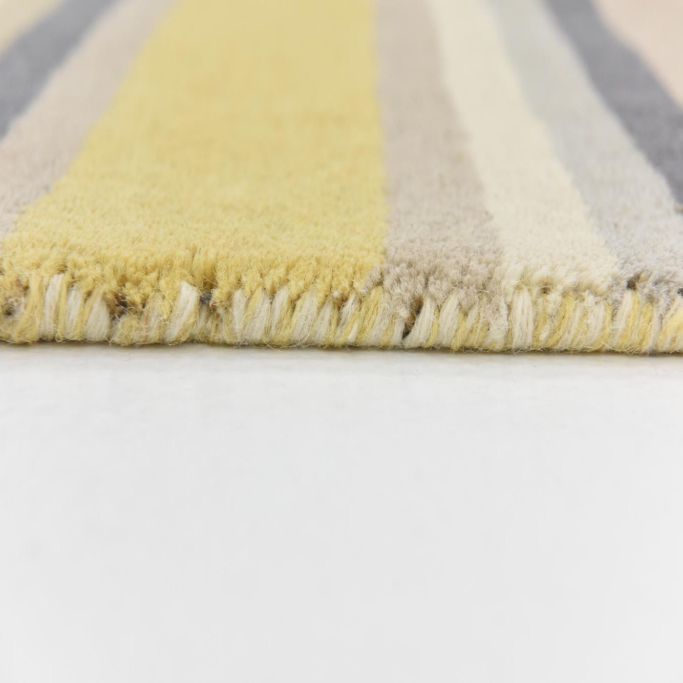 With its neutral yet colorful stripes, this rug can anchor spaces with contemporary to casual aesthetics. Its texture adds warmth and comfort underfoot, making it ideal for living rooms, home offices, or bedrooms. The Luna rug's understated pattern pairs elegantly with minimalist decor, yet offers enough color to stand as a focal point in a neutrally toned room. It would also complement a coastal-inspired interior, where the light blue and yellow can echo the natural hues of the seaside.