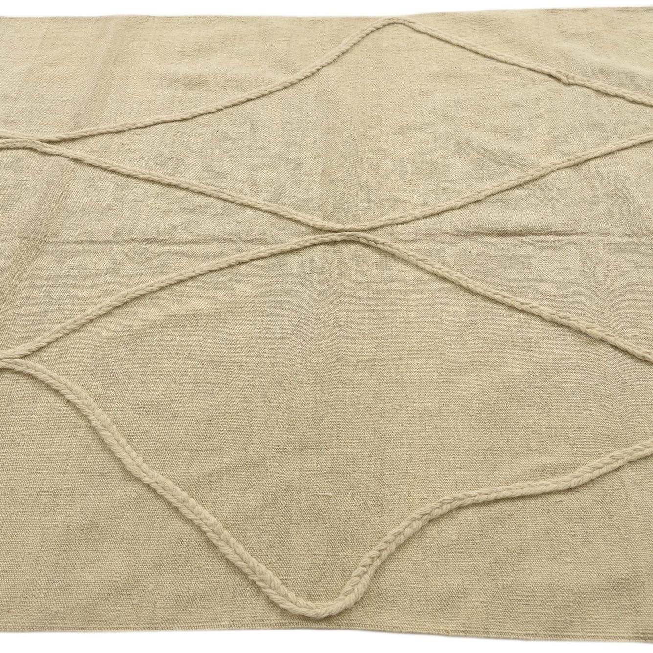 A 4x6 rectangular ivory wool shag rug with a raised braided diamond pattern, handmade for a tribal modern look.
