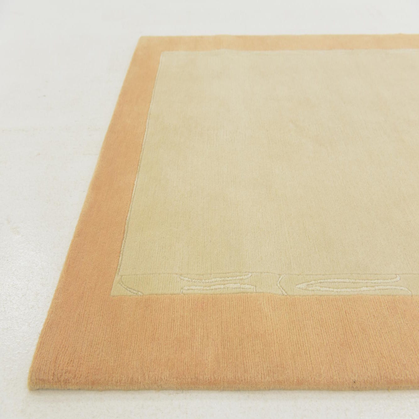 A 4x6 rectangular Nepal Collection rug featuring a cream field with a subtle patterned ivory border and a wider peach-orange outer border, suitable for a living room.
