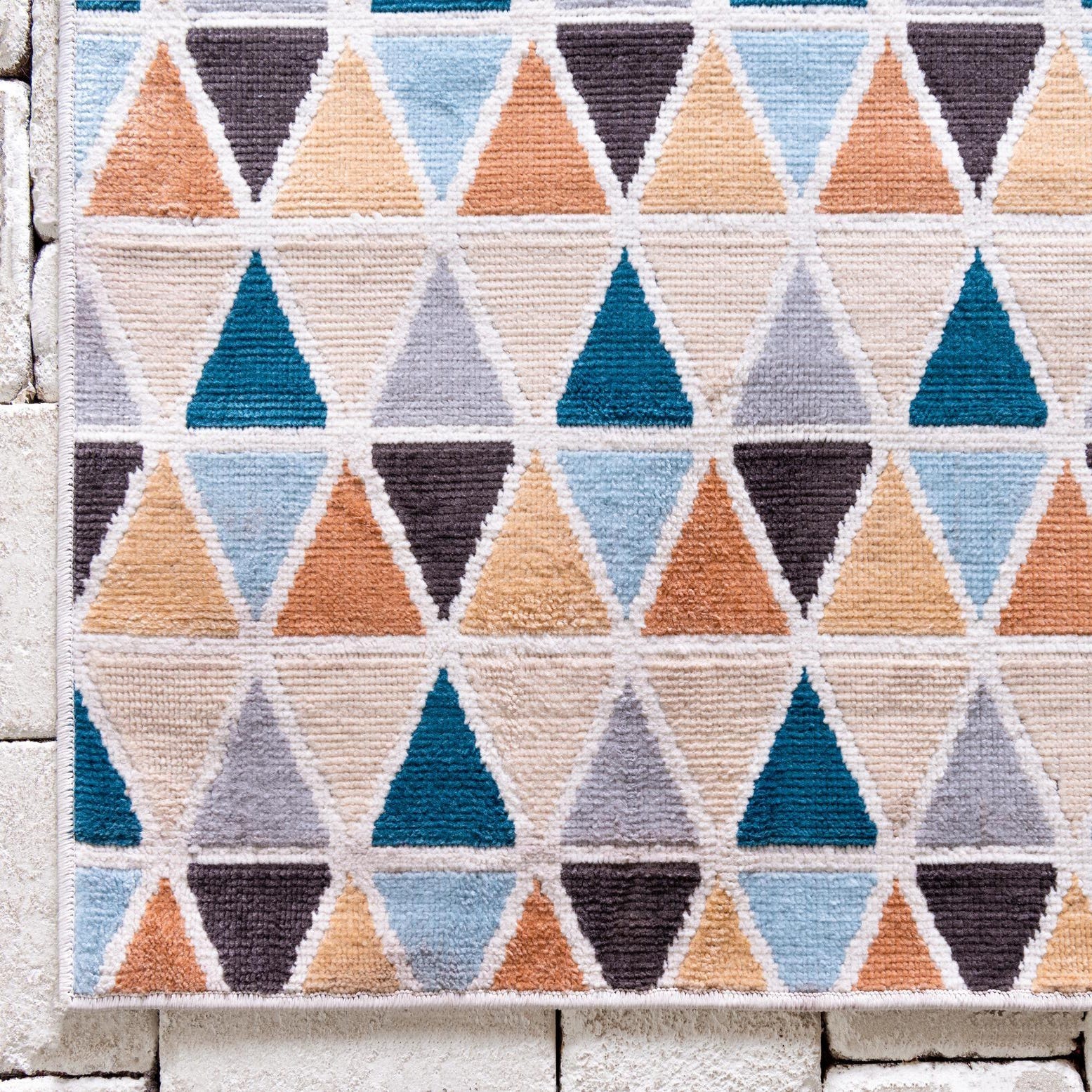 Primary color is Cream. Colors in this rug include: Cream, Beige, Blue, Gray, Orange, Teal, Yellow.