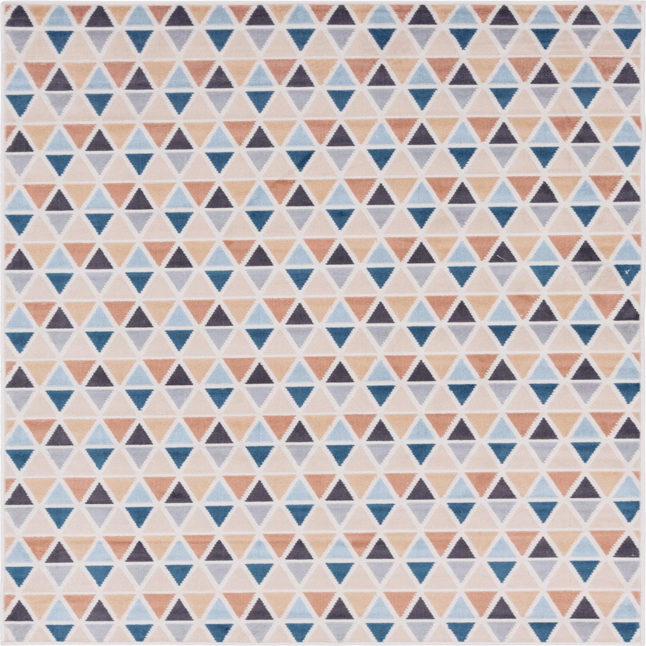 Primary color is Cream. Colors in this rug include: Cream, Beige, Blue, Gray, Orange, Teal, Yellow.