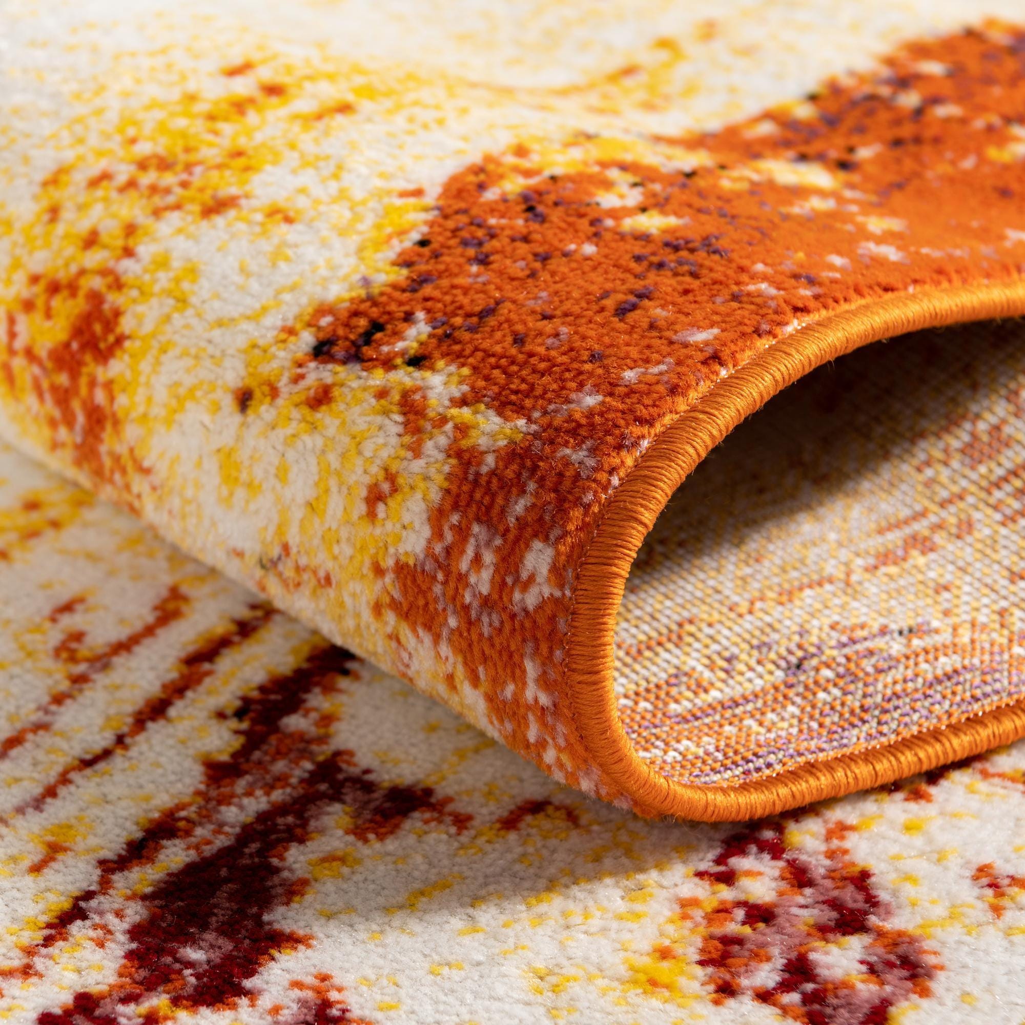 Primary color is Cream. Colors in this rug include: Cream, Black, Blue, Ivory, Orange, Puce, Purple, Red, Pink.