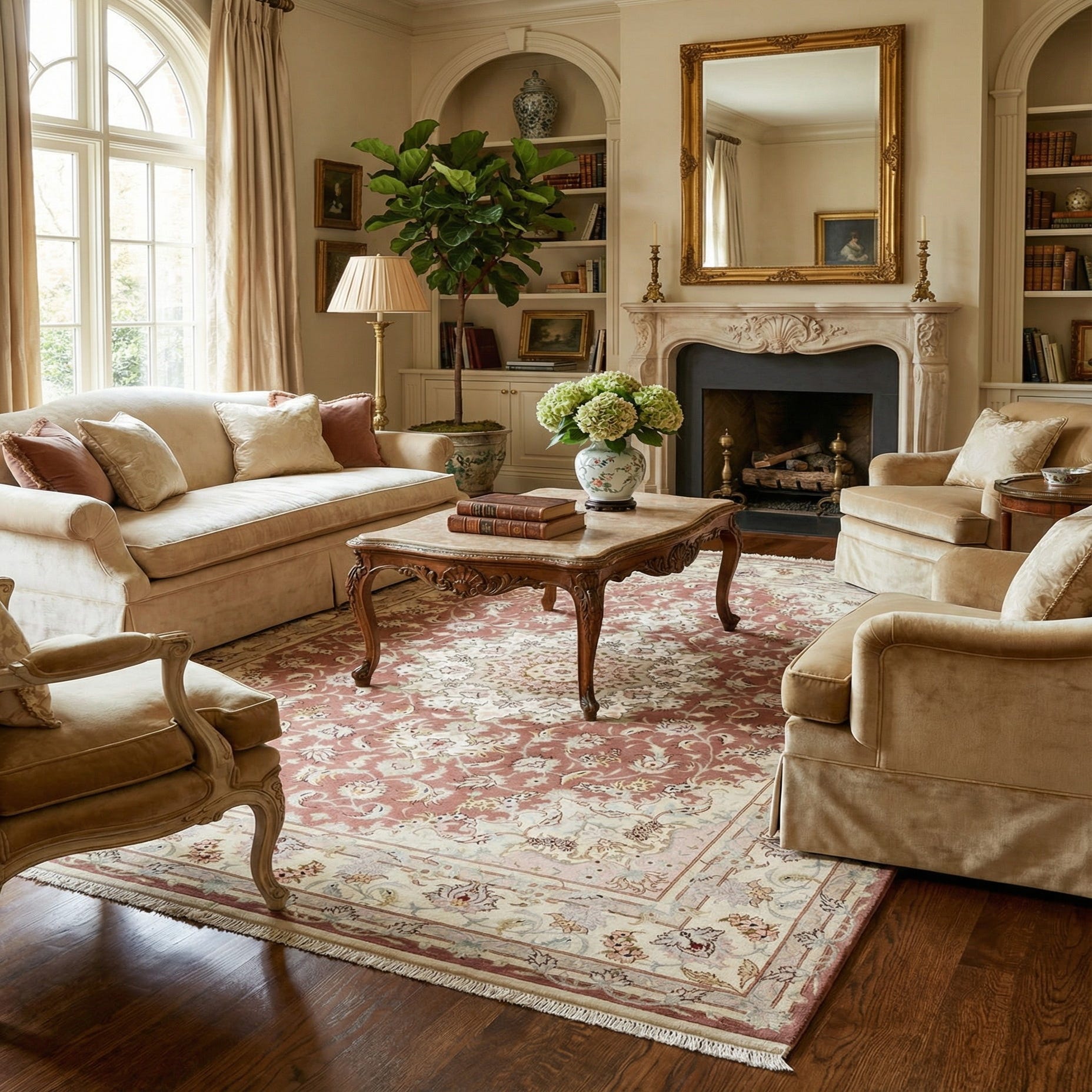 This rug's classical pattern and timeless color scheme make it an ideal choice for interiors that lean towards the traditional, including formal living rooms and dining spaces. Its refined elegance would also complement the understated luxury of a home office or library. Additionally, the inclusion of silk lends a level of sophistication that could enhance contemporary settings that embrace classic undertones. The Tabriz rug can serve as a focal point or as an anchoring element to unify a room's decor while providing a touch of warmth and artisanal craftsmanship.