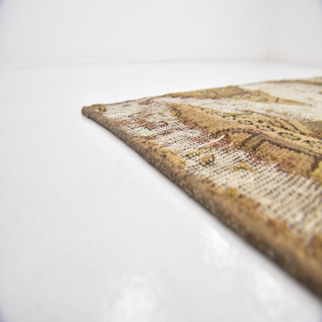 The Ultra Vintage collection presents a 4x6 hand-knotted rug crafted from 100% wool, featuring a cream background with an array of neutral tones including brown, light brown, beige, and olive accents. The rug carries an ancient aesthetic with its deliberately distressed look, giving it an antique character that complements its intricate patterns. Its design includes traditional motifs and geometric elements that reveal a sophisticated yet weathered charm, offering both visual interest and textural appeal.