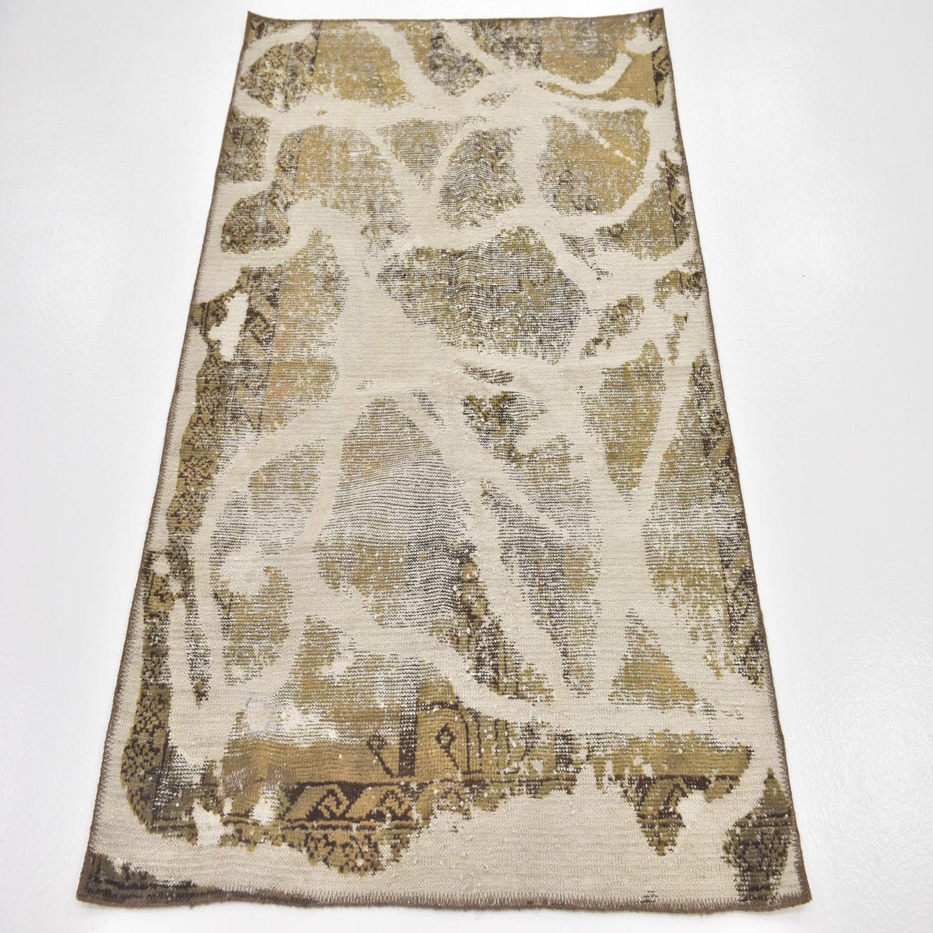 This Persian Ultra Vintage rug is an antique Persian Rug that has been washed, over-dyed, and then shaved down to a low pile. Look at the detail pictures to fully appreciate the uniqueness of this piece.