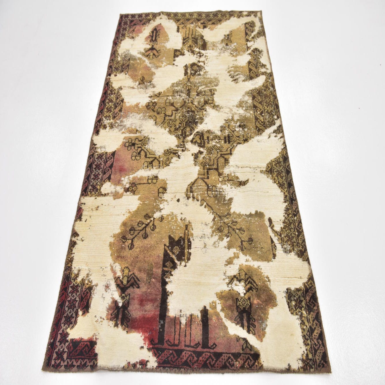 This Persian Ultra Vintage rug is an antique Persian Rug that has been washed, over-dyed, and then shaved down to a low pile. Look at the detail pictures to fully appreciate the uniqueness of this piece.