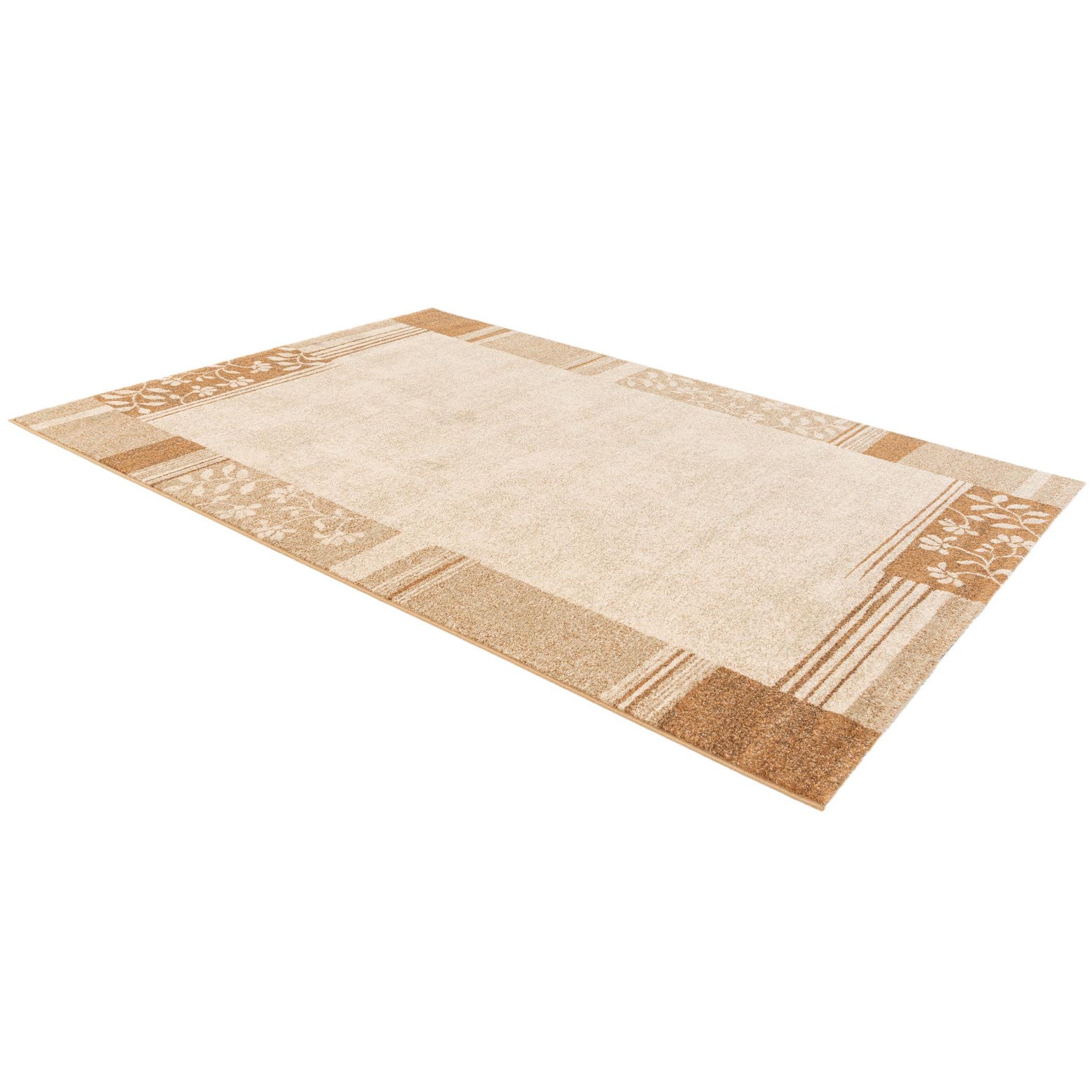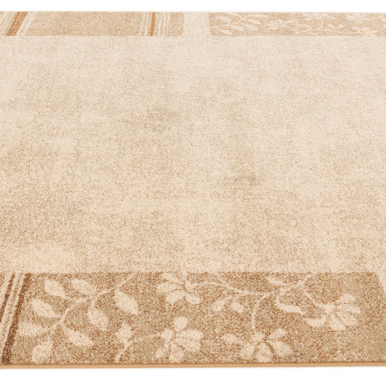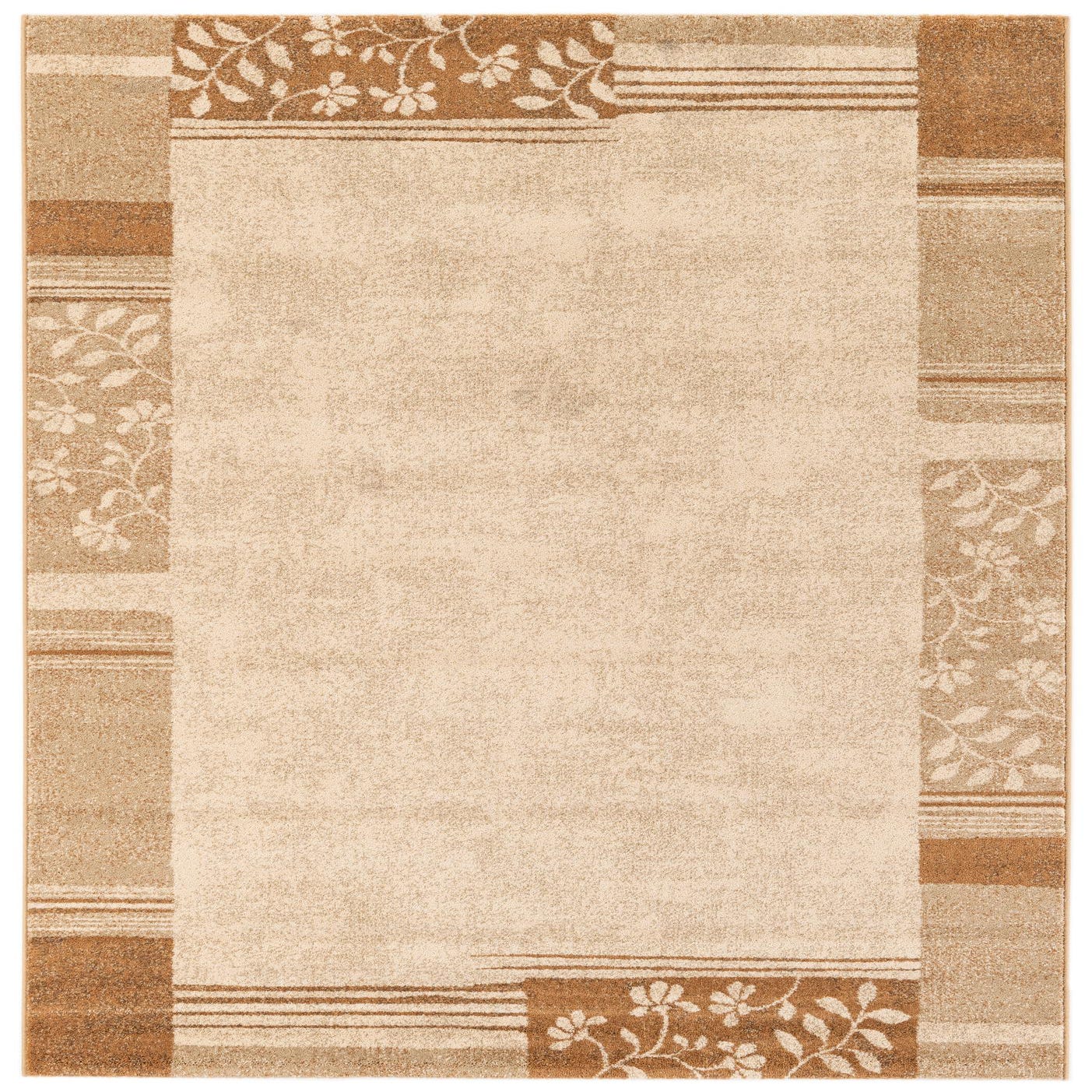 A 5x7 rectangular ivory area rug with a modern floral border in shades of brown and cream.