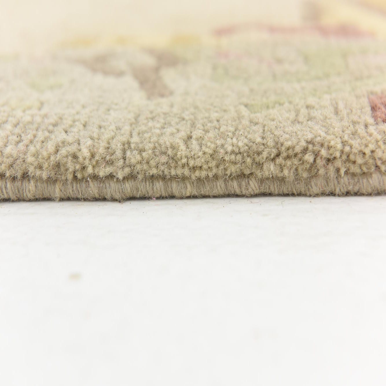 Primary color is Cream. Colors in this rug include: Cream, Brown, Light Green, Peach, Tan, Gold.