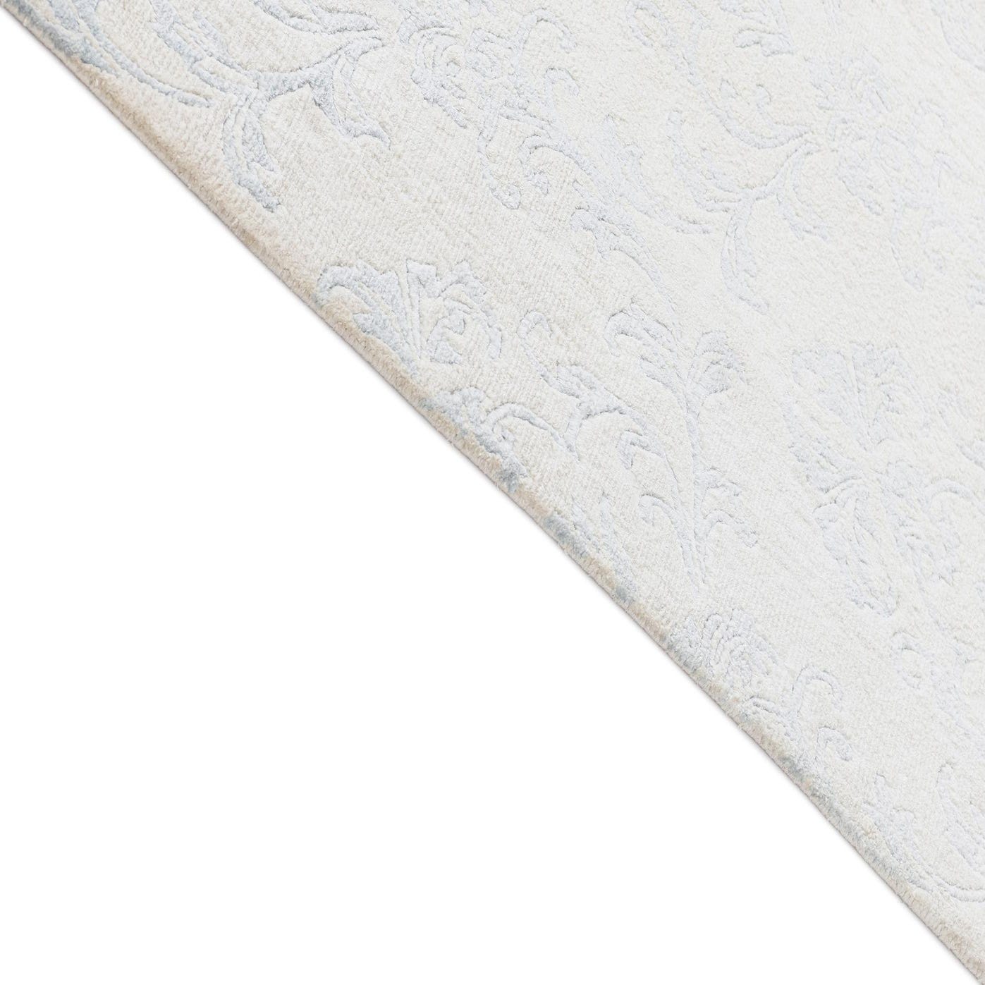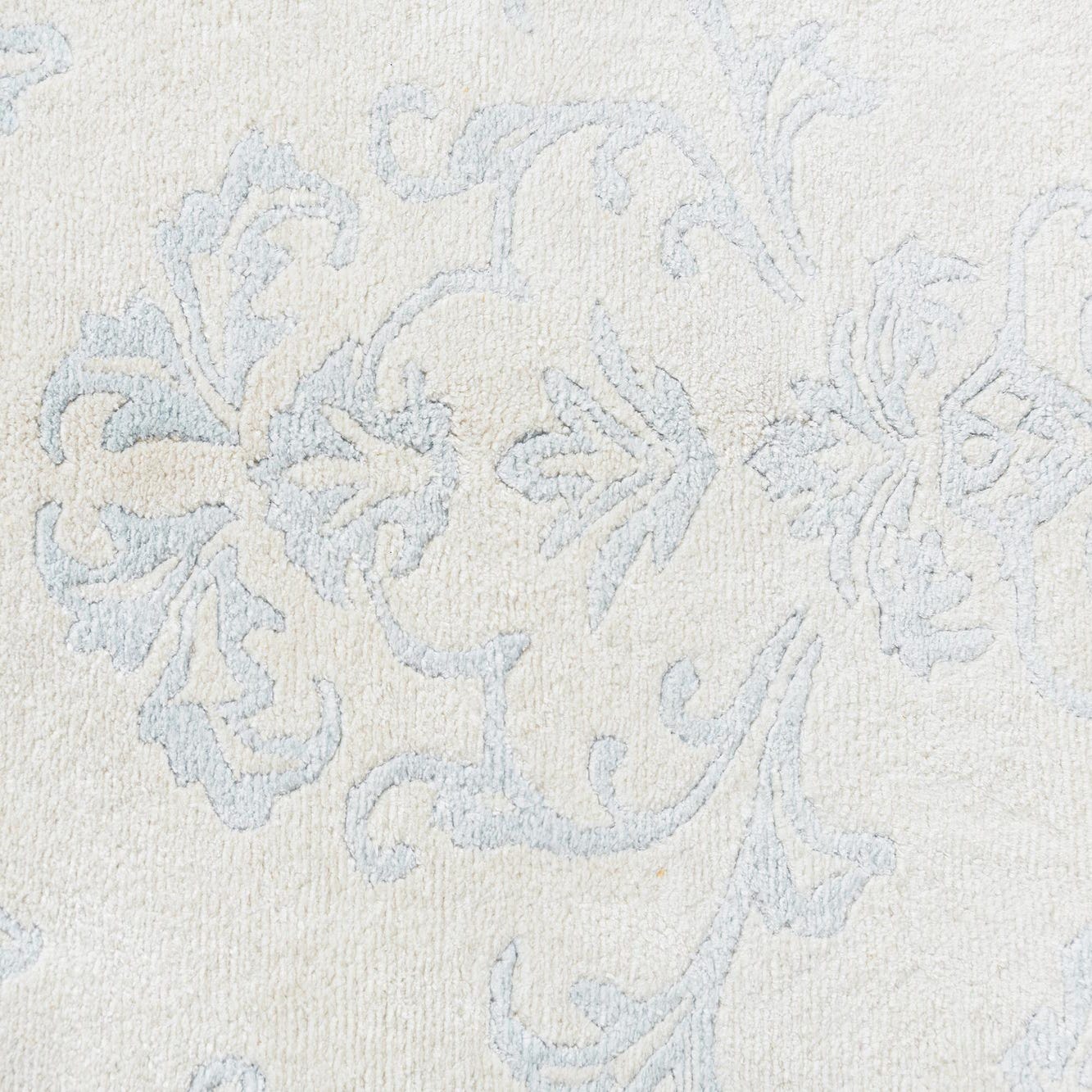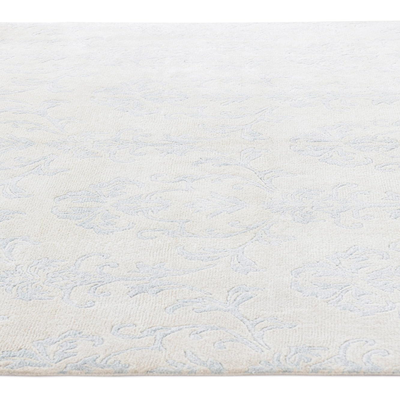 The Darya Collection presents a beautifully crafted 5x8 rug, hand-made from a blend of wool and cotton. It features an elegant damask pattern in light blue set against a cream background, providing a soft and sophisticated visual that complements the plush texture. The light blue design creates a serene and inviting atmosphere, while the cream base gives the rug a versatile foundation that works with a wide range of color schemes.