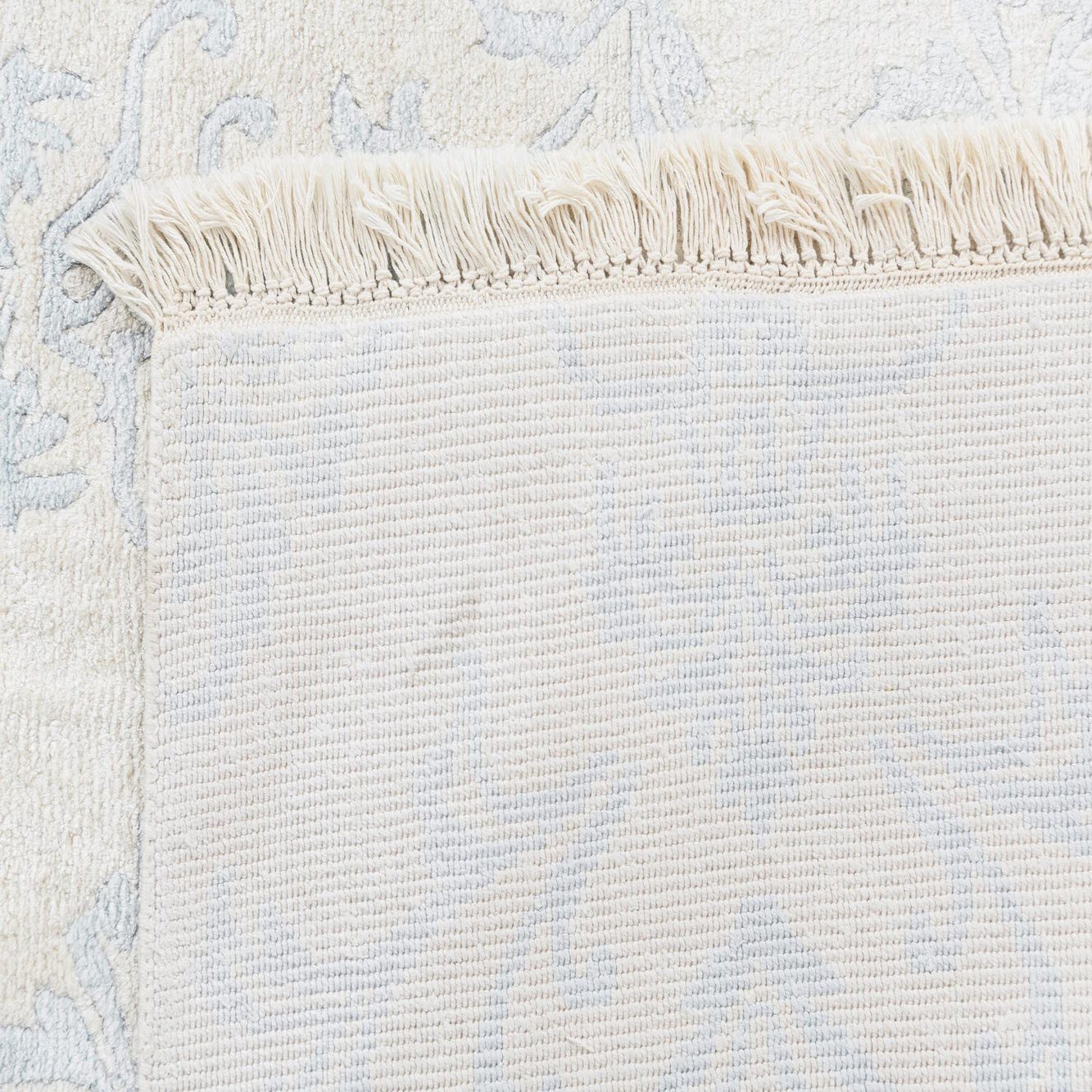 The delicately woven pattern and serene color palette make this rug particularly suitable for spaces where a tranquil aesthetic is desired. It would enhance the look and feel of traditional, transitional, and contemporary interiors alike. Given its size and visual appeal, it can serve as the centerpiece in a living room, be placed under a dining table, or bring warmth and style to a bedroom. Pair this rug with light-toned furniture for a harmonious look, or use it to create a subtle contrast against darker woods or modern metallic finishes. The natural materials and hand-made construction ensure that each piece is unique, adding an element of bespoke luxury to your space.