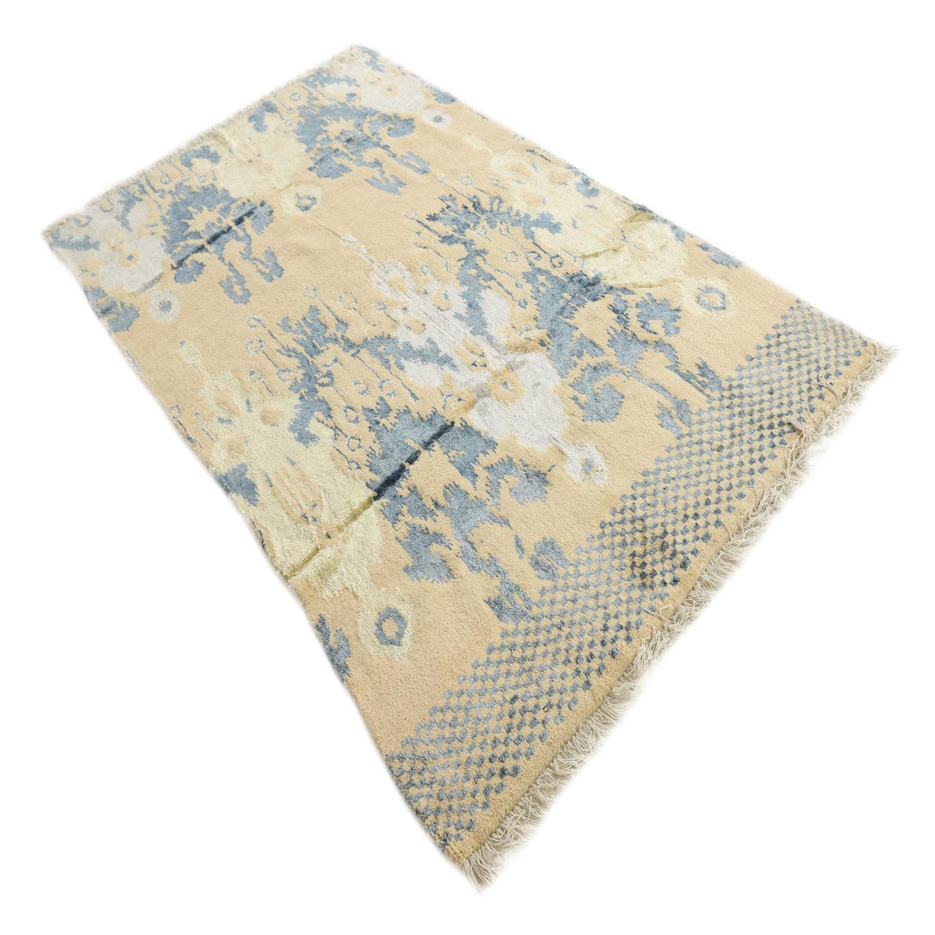 A rectangular 5x8 Darya rug from Rugs.com with an abstract pattern in ivory, cream, and blue, featuring a high pile.