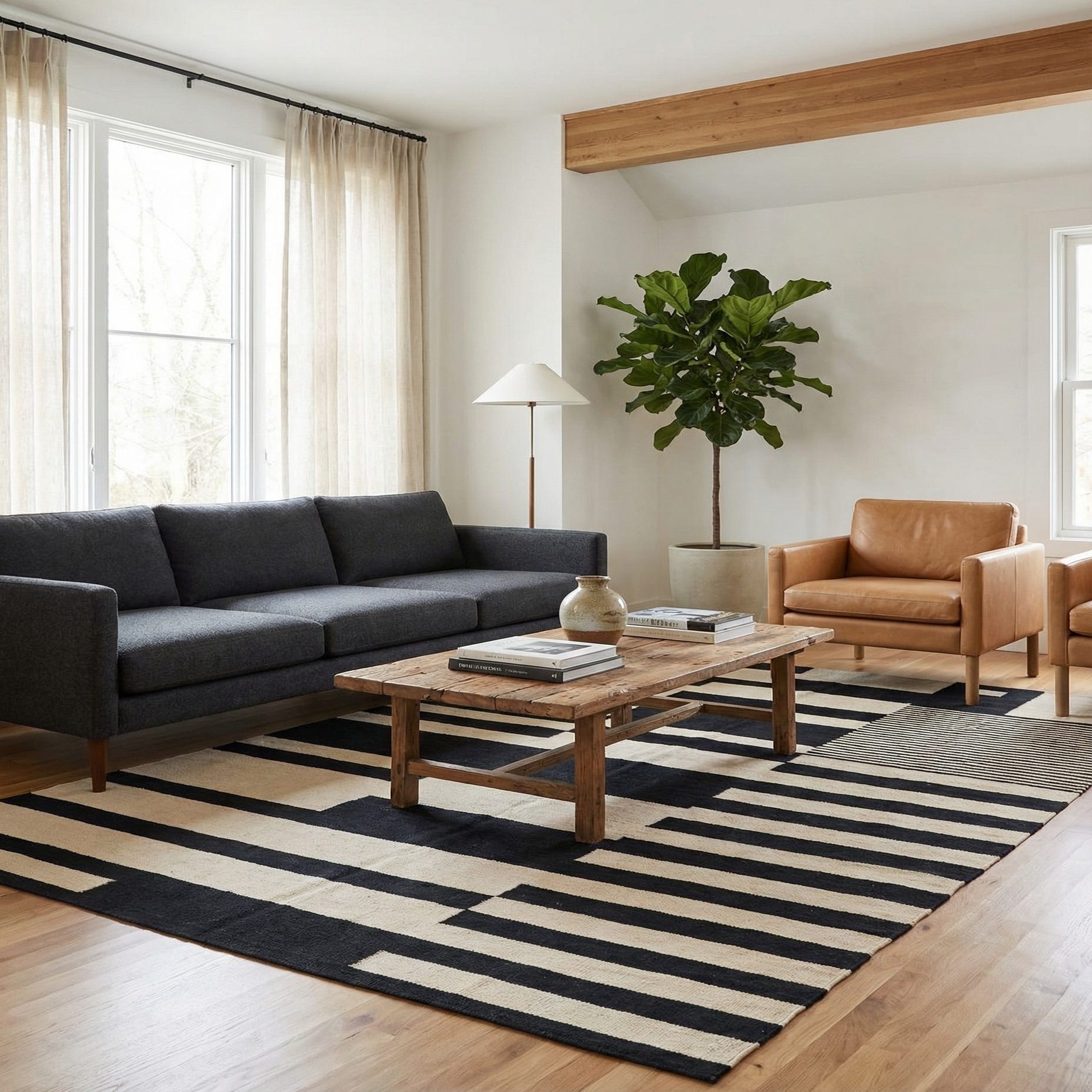 5' 1 x 6' 10 Hand Woven Kilim Modern Wool Rug