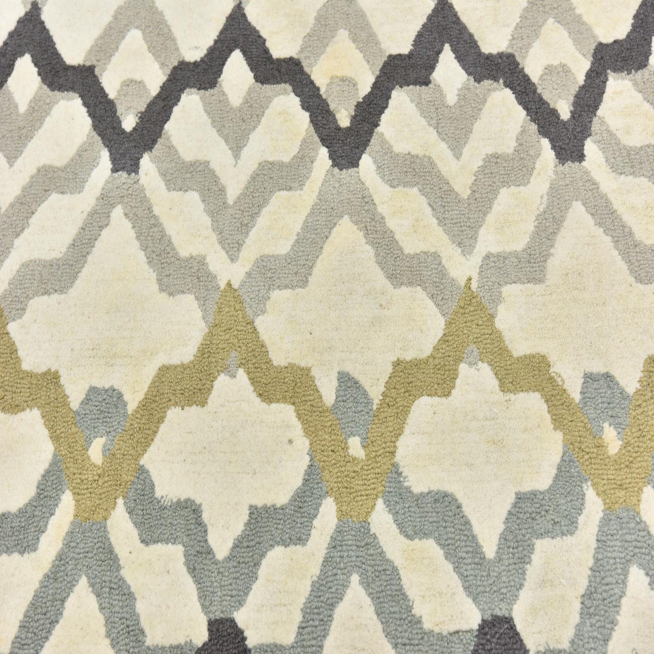 The Luna Collection rug is a 5x8 hand-tufted piece that offers a contemporary take on a classic geometric pattern. Crafted from 100% wool, it displays a harmonious blend of cream, gray, and gold hues. This combination of colors set against the cream background results in a versatile design that can integrate smoothly into a plethora of interiors, ensuring both elegance and warmth.