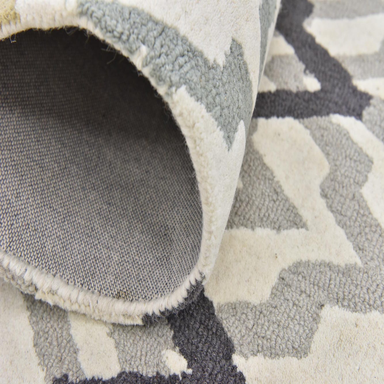 The rug features a series of interconnected diamonds, creating a sense of continuity and fluidity that is pleasing to the eye. The varying shades within the pattern add depth and visual interest, while the neutral palette ensures compatibility with a variety of color schemes. This rug's texture is plush, with the wool providing a soft and inviting surface underfoot.