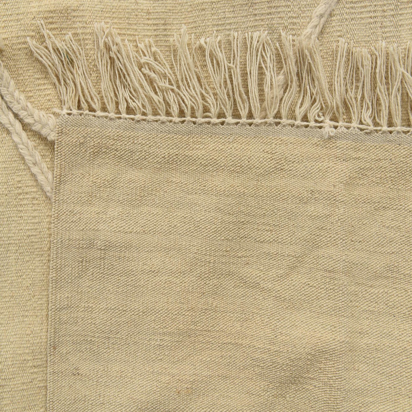 The design is complemented by the fringe detailing on the shorter ends, which adds a traditional element to the modern aesthetic. This rug's neutral color palette seamlessly integrates into a variety of interior settings, from a sleek, contemporary living room where it can serve as a grounding element, to a more casually styled family room where its texture adds warmth and depth. The wool construction is well-suited to areas with moderate foot traffic, making this piece a versatile addition to any space in need of a touch of understated elegance.