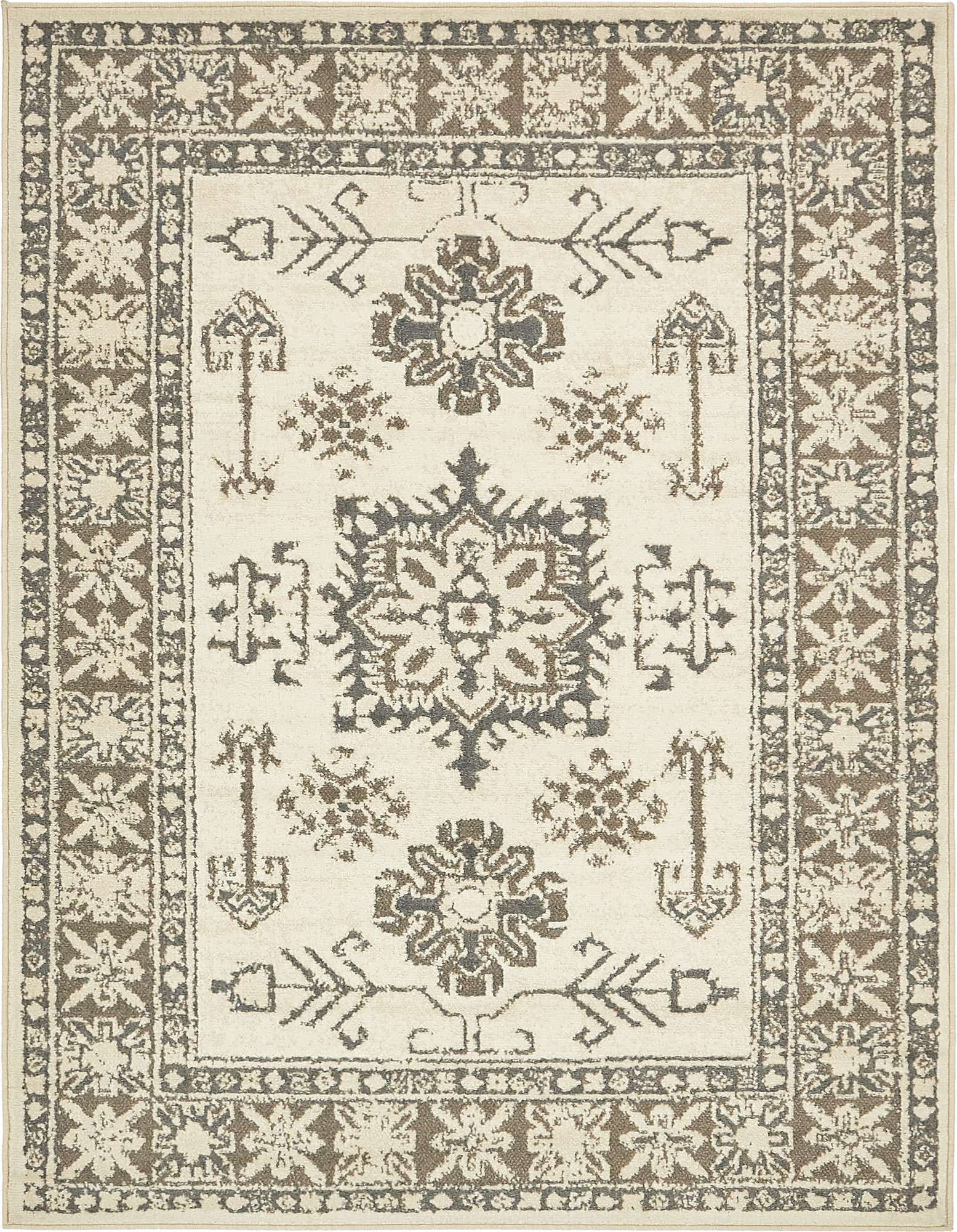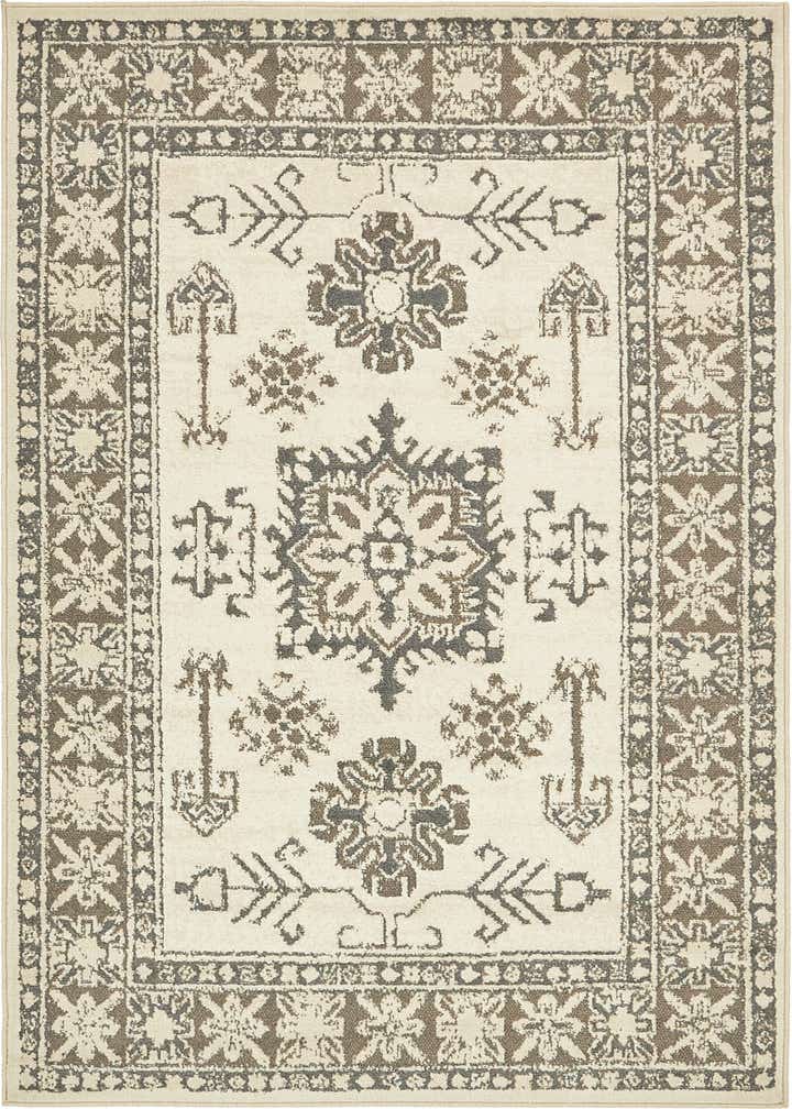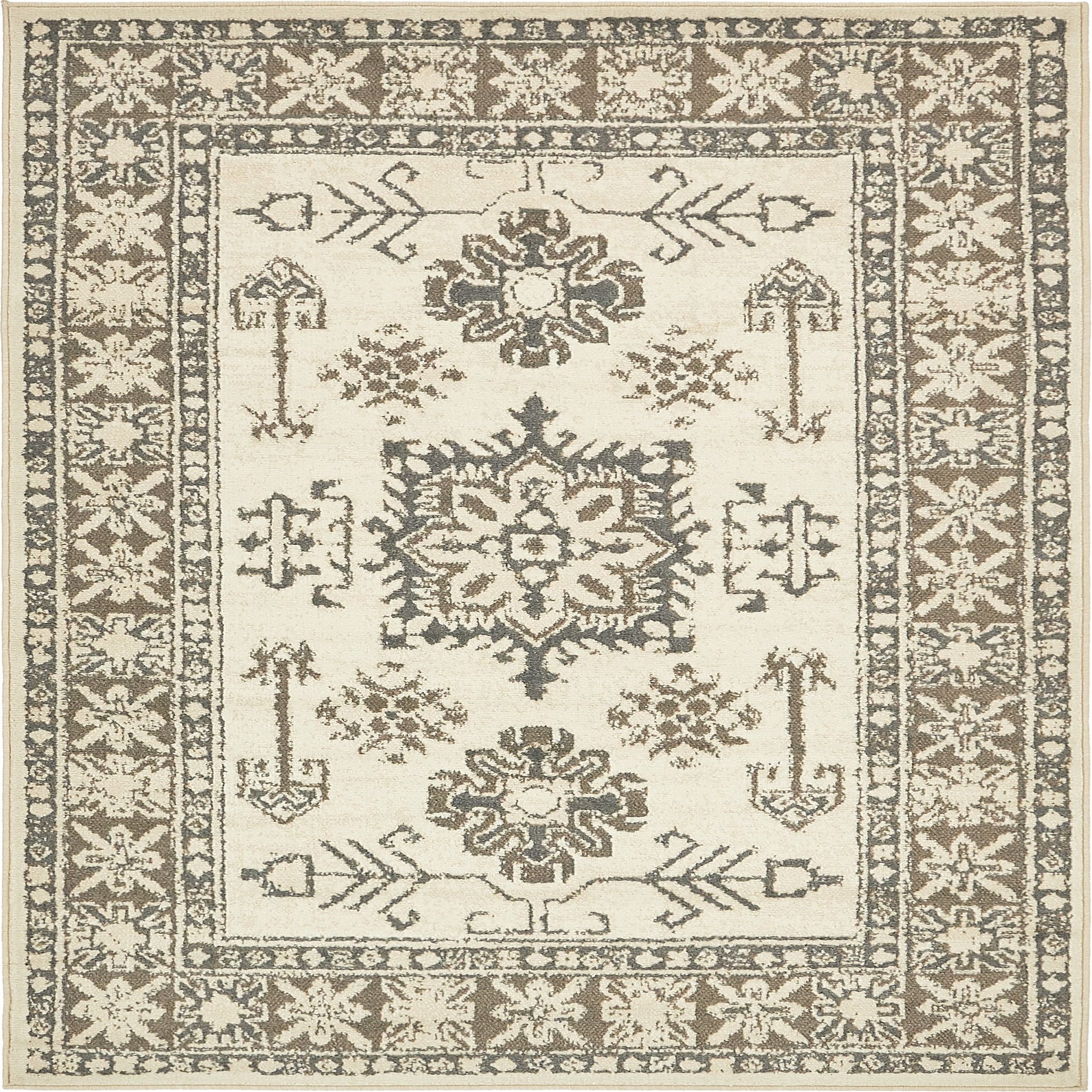The rug arrived safely within 5 days of ordering. It is a very nice rug and looks very good under our dining table over a barley coloured carpet.Very pleased with it. Size 8x8 was true to size.