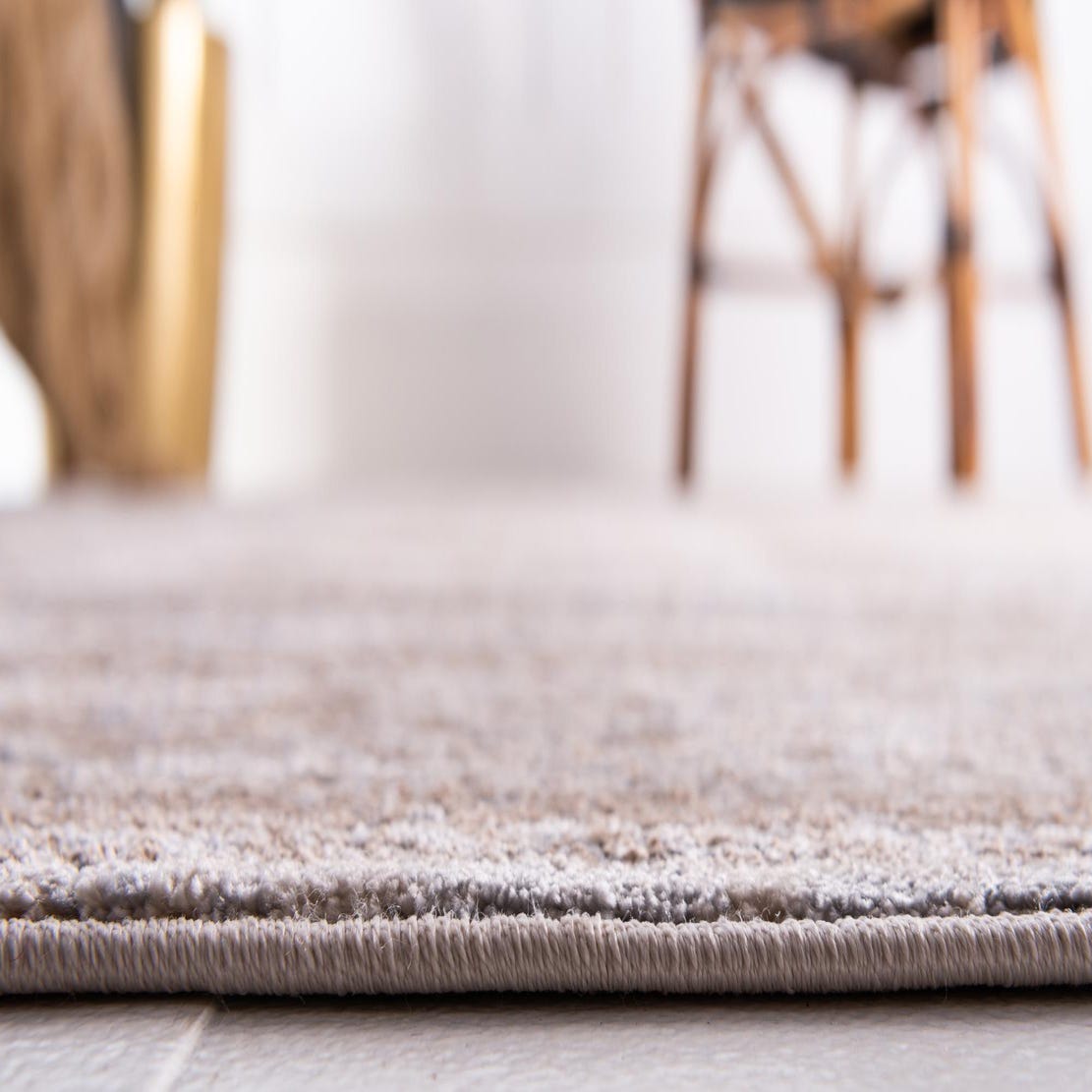 Machine-made from 85% polypropylene and 15% polyester, the rug has a low-profile, velvety texture with a subtle sheen that works well on hardwood or tile. It fits naturally beneath a small round dining table, anchors a cozy seating cluster, or softens the entry to a bedroom. Pair it with soft neutrals, weathered wood furniture, and light blue or sand-colored accents for a calm, transitional space that balances traditional detail with relaxed everyday living.