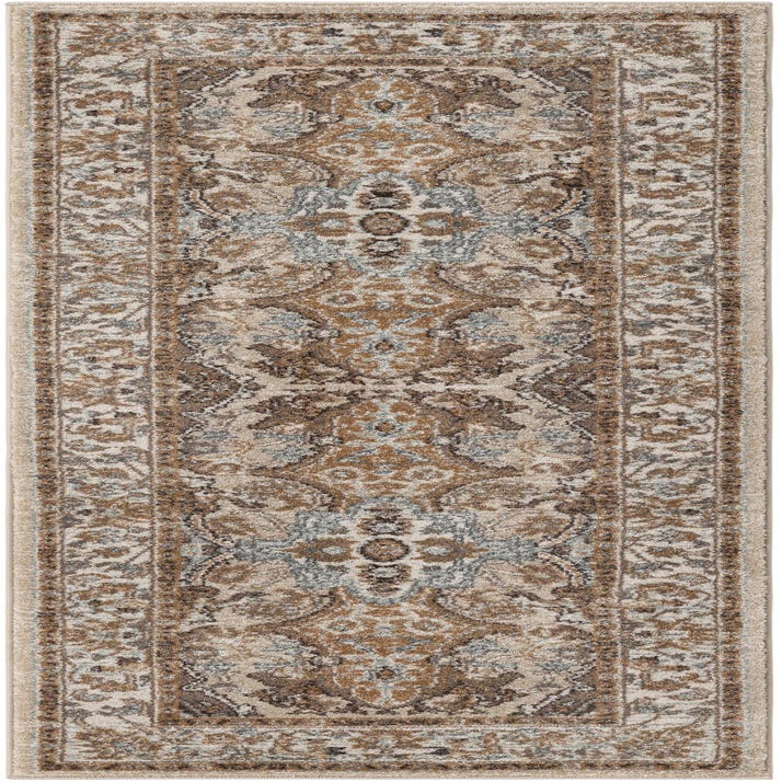 Primary color is Cream. Colors in this rug include: Cream, Gray, Ivory, Brown, Tan.