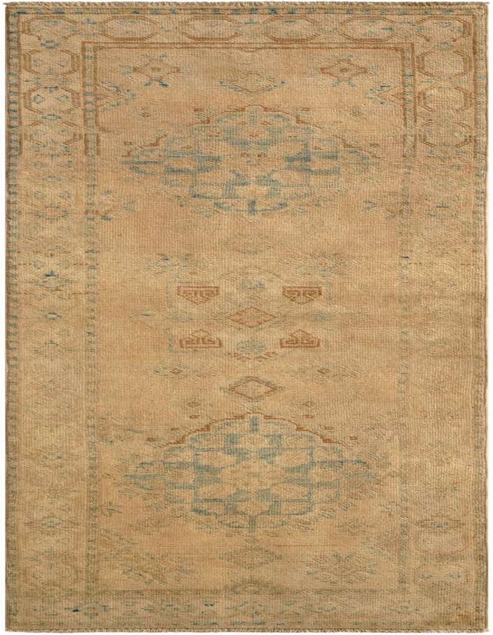 Primary color is Cream. Colors in this rug include: Cream, Brown, Blue.