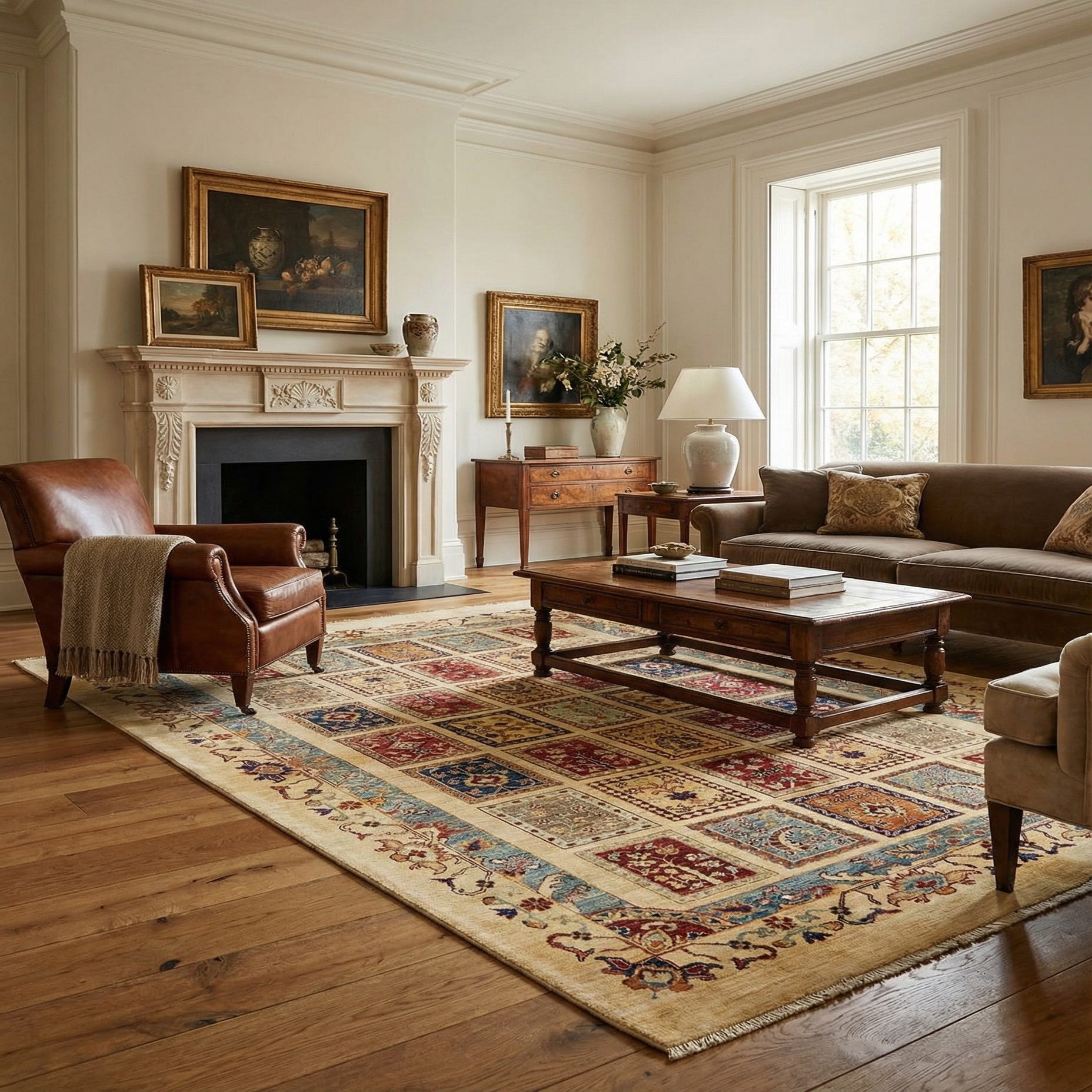 This piece would complement traditional settings that boast similarly warm wood tones or richly upholstered furniture. Equally, it could serve as a statement piece in a more contemporary setting, where its elaborateness contrasts with minimalist decor, or it could tie together a bohemian-style room with its intricate patterns and earthy tones. The Ariana Ziegler rug is a harmonious addition to spaces that aim to meld comfort with an enduring style.